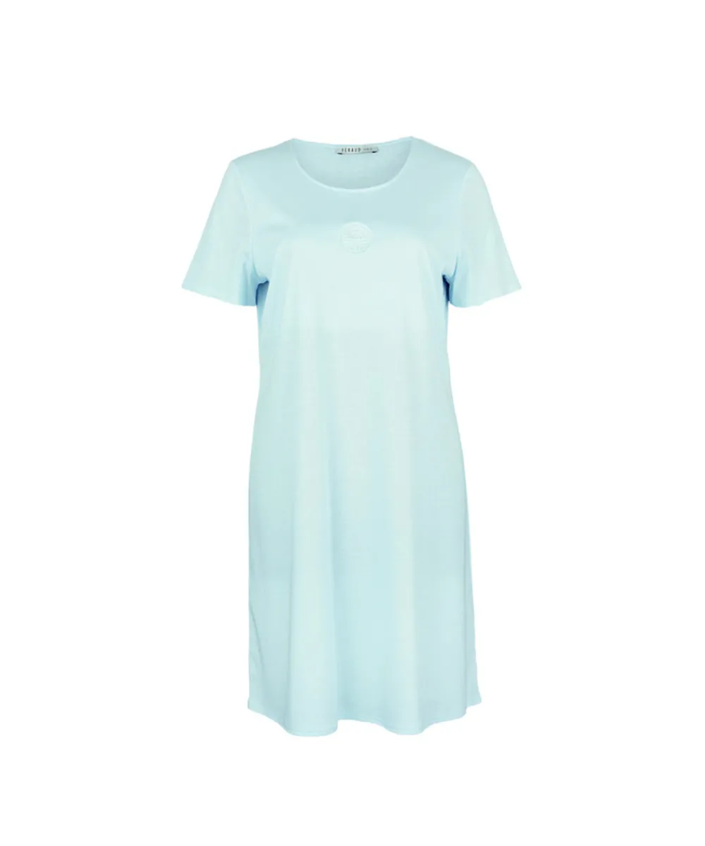 Klassisk og behagelig natkjole fra Louis Feraud, der har været en bestseller i mange år. Natkjolen er lavet i den højeste kvalitet af bomuld, der sikrer dig, at din favoritnatkjole holder sig lækker blød i mange år frem. Natkjolen har en rund halsudskæring og korte ærmer. Det velkendte Louis Feraud logo er placeret på brystet og tilføjer natkjolen et eksklusivt look. Materiale: 100% bomuld.