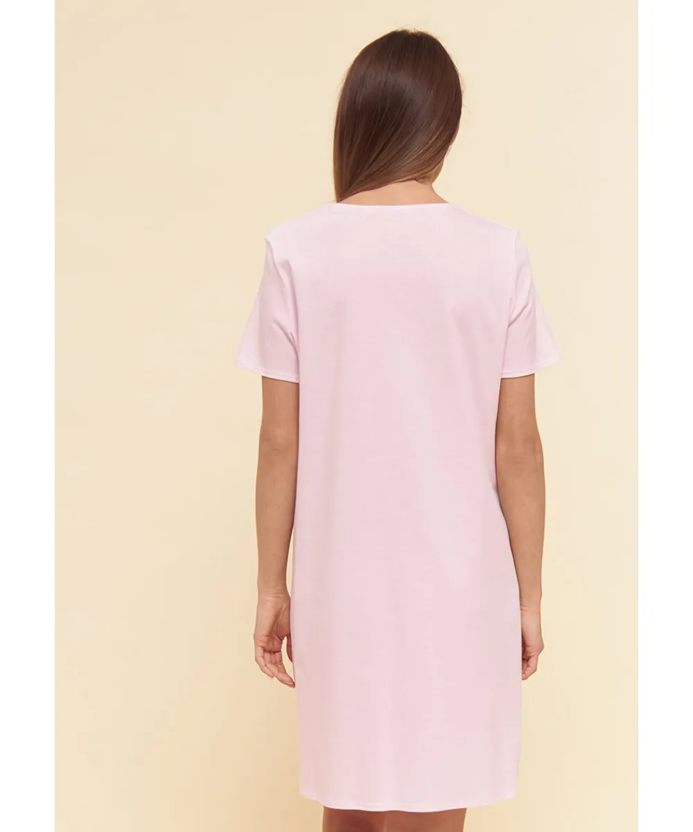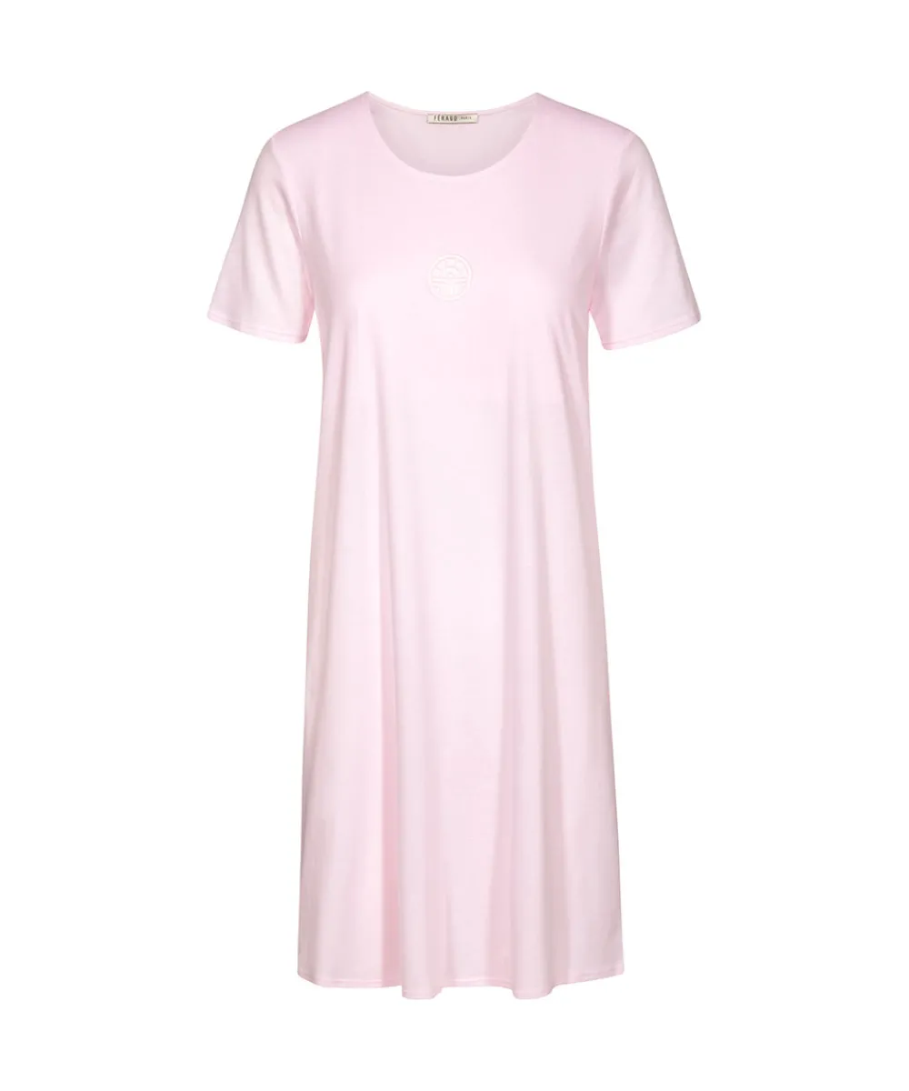 Klassisk og behagelig natkjole fra Louis Feraud, der har været en bestseller i mange år. Natkjolen er lavet i den højeste kvalitet af bomuld, der sikrer dig, at din favoritnatkjole holder sig lækker blød i mange år frem. Natkjolen har en rund halsudskæring og korte ærmer. Det velkendte Louis Feraud logo er placeret på brystet og tilføjer natkjolen et eksklusivt look. Materiale: 100% bomuld.