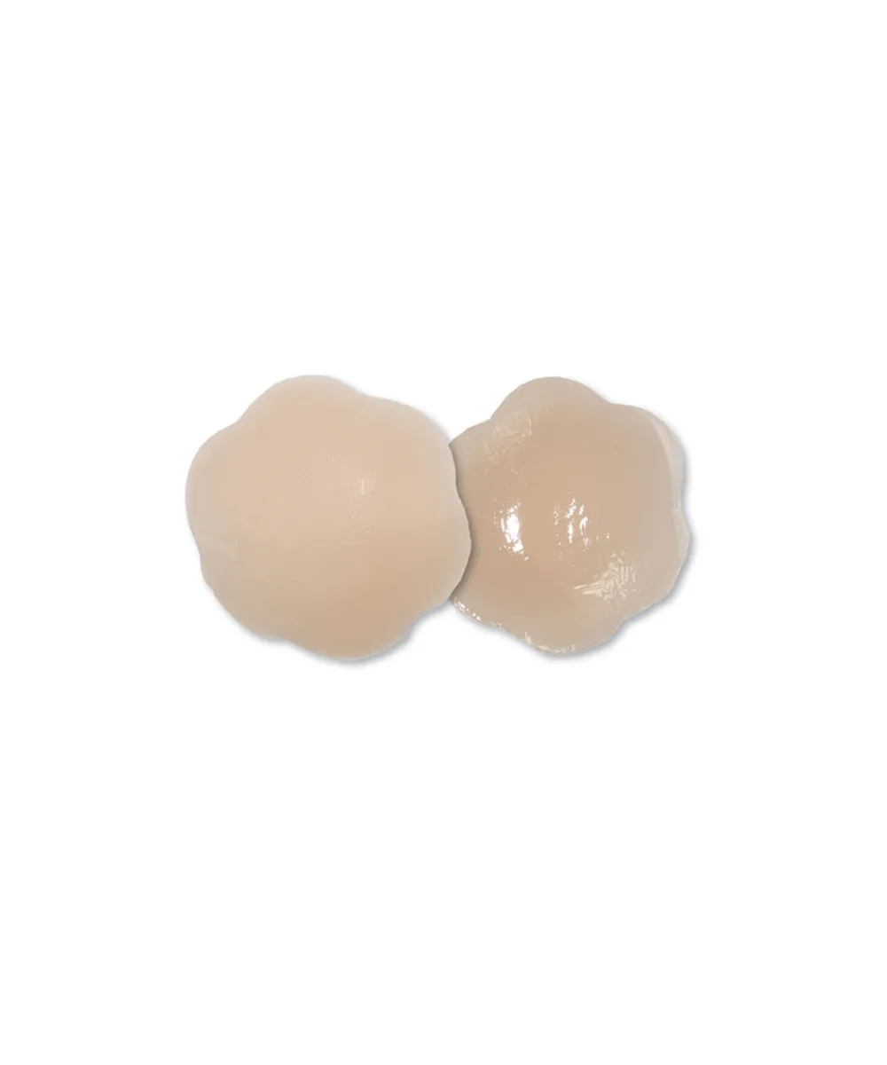 Selvklæbende nipple covers fra MAGIC Bodyfashion i silikone, som dækker brystvorten. Nipple covers er nemme at påsætte, og holdes fast med hudvenligt klæbemiddel. Nipple covers i silikone kan vaskes og genbruges. Nipple covers er lavet med ultra tynde kanter og kan bæres med eller uden bh. De er usynlige under tøjet. OBS: Vær opmærksom på at beskyttelsesfilm/tape ikke må fjernes, når man prøver varen, hvis varen skal kunne returneres. Materiale: 90% silikone, 10% termoplastisk polyuretan