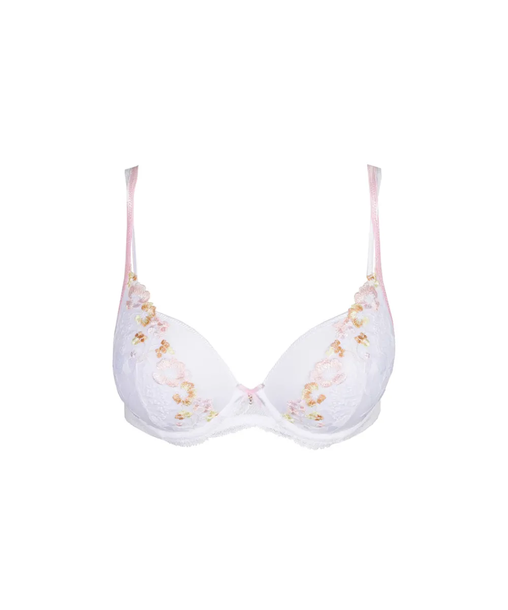Elegant hjerteformet trekvartskålsbh fra Marie Jo med vattering og fine blondedetaljer. Skålene er lavt skåret ved midterstykket og bliver gradvist højere mod siderne. Sømløst design, der gør bh’en ideel under kropsnært tøj. Bh’en løfter og deler barmen, hvilket giver en diskret kavalergang. Trekvartskålsbh’en giver god støtte til barmen. Den dækker og holder på plads, men din barm er ikke pakket helt ind. Ofte har trekvart-modellen skråt skåret skåle, som ligger sig flot ind til barmen. Materiale: 56% polyester 33% polyamid 11% elastan