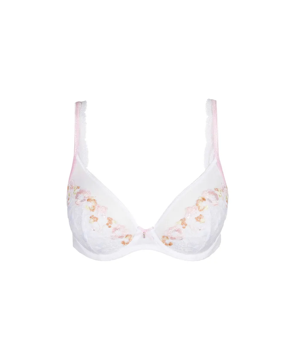 Elegant og feminin trekvartskålsbh fra Marie Jo med et lavt midterstykker, der giver en flatterende kavalergang. Bh’en er designet med yndige blomsterinspirerede blonder og eksklusivt materiale med smukt print. Bh’en er designet med bøjle og er uden vattering. Trekvartskålsbh’en giver god støtte til barmen. Den dækker og holder på plads, men din barm er ikke pakket helt ind. Materiale: 68% polyamid 18% elastan 14% polyester