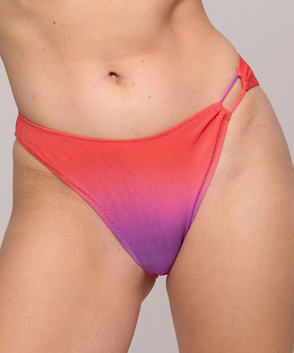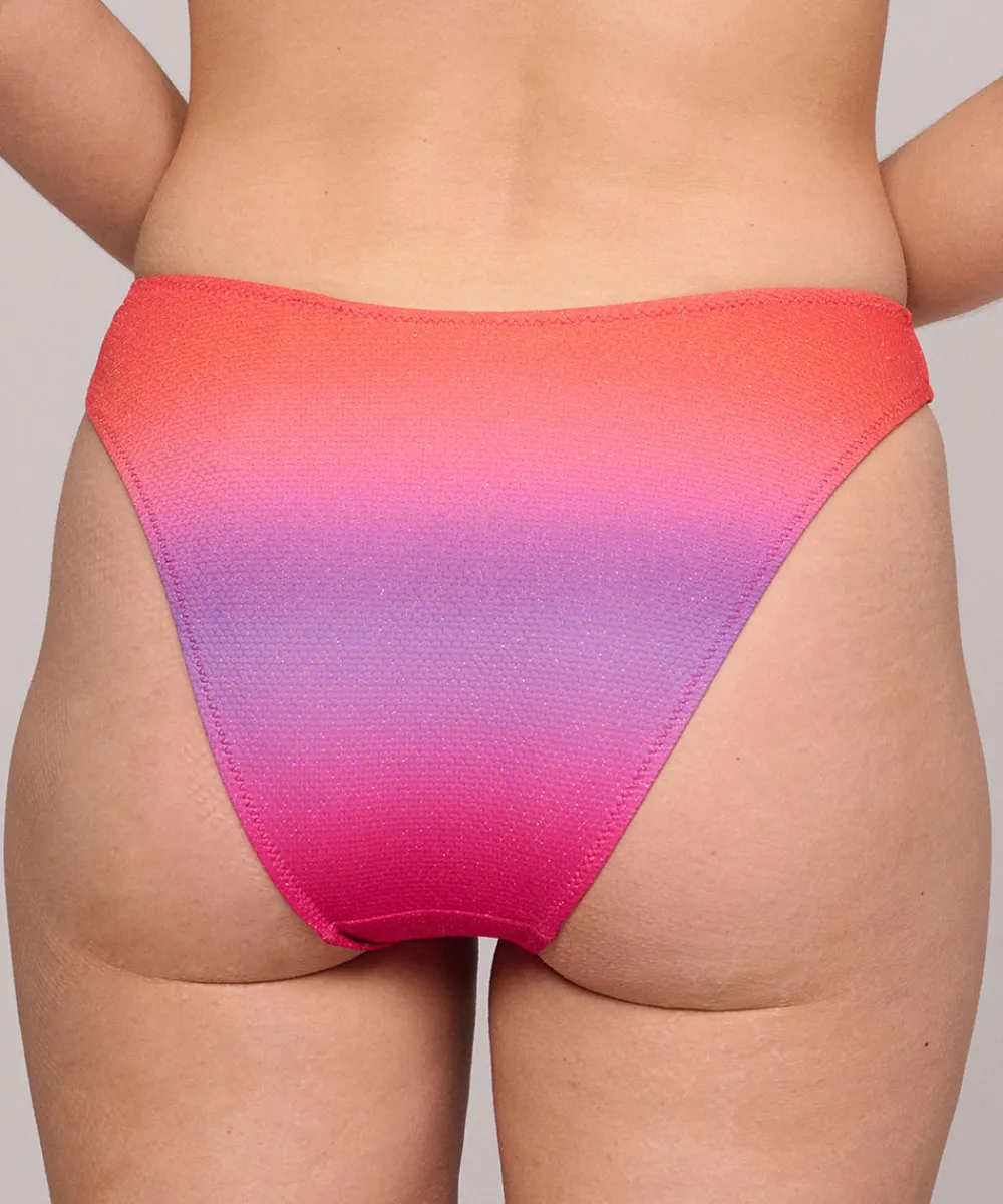Trendy bikiniunderdel fra Marie Jo med dekorative bindebånd i siderne. Bikinitrussen er designet i farverigt mønster med diskret glimmertråd. Bikinitrussen er lavet i en klassisk taimodel med smalle sidestykker. Badetøj skal gerne sidde stramt, da det udvider sig ved brug. Husk altid at skylle badetøjet op i koldt vand efter brug. Materiale: 50% polyamid 38% polyester 7% elastan 5% metaliske fibre