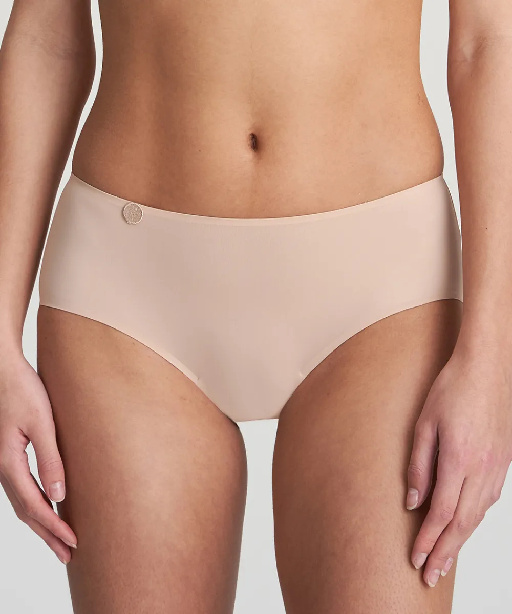 Shorttrusse fra Marie Jo med optakt front- og bagstykke. Trussen er lavet af et meget let materiale med sømløse trussekanter, der gør den ideel under tætsiddende tøj. Meget dækkende trusse, der har en komfortabel pasform. Materiale: 81% polyamid, 13% elastan, 6% bomuld.