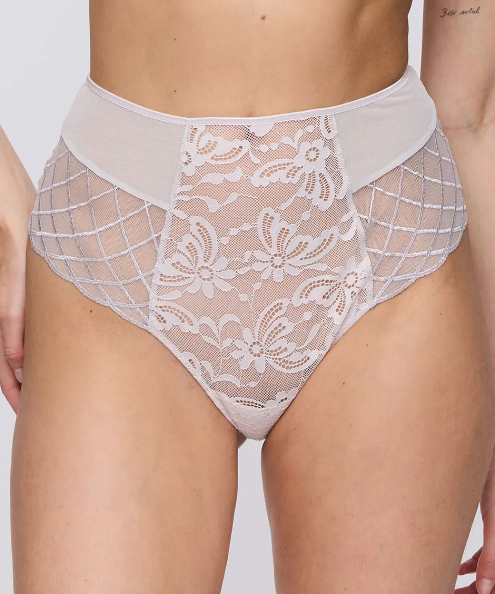 Højtaljet stringtrusse fra Marie Jo, som er lavet med brede sidestykker. Trussen er designet med de fineste blonde- og meshdetaljer. String og tangatrusser er særligt velegnede under tætsiddende bukser, kjoler og nederdele, da bagstykket – en tynd streng mellem balderne – ikke efterlade synlige overgange under tøjet. Sting og tangatrusserne har en høj benudskæring og får derfor dine ben til at syne optisk længere. Materiale: 47% polyamid 29% polyester 19% elastan 5% bomuld
