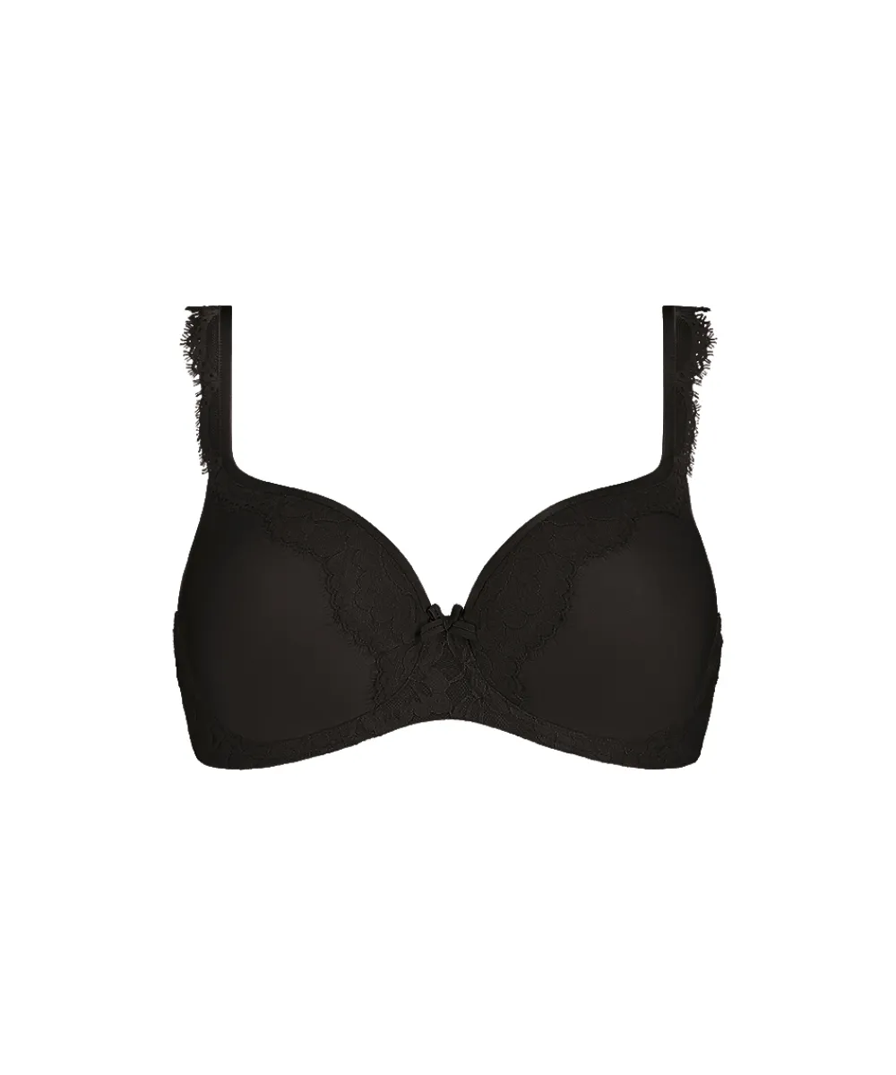Trekvartskålsbh med fin blonde. Bh’ens tynde skåle og dens lette vattering, er med til at give en flot, naturlig barm. Bh’en er med sine glatte skåle, ideel under tætsiddende tøj.