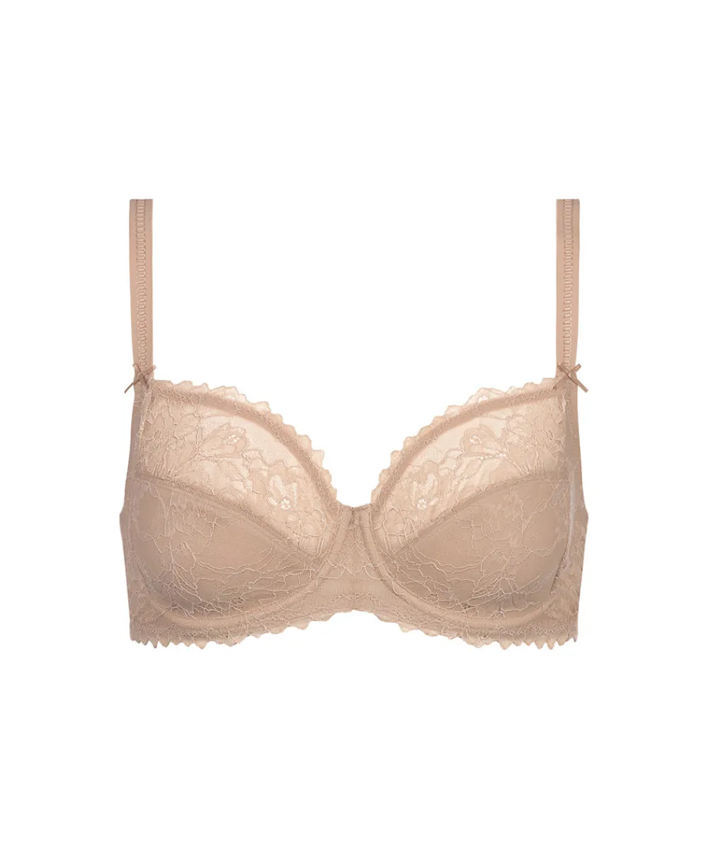 Klassisk fuldskåls bh uden vattering med fine blondedetaljer og mønster på skålen. En fuldskålsbh dækker det meste af brystet og giver dermed et godt hold til barmen. Stropperne er placeret godt oppe på skuldrene og danner ofte et U på ryggen, så de ikke så let glider ned og så de samtidig giver et bedre hold. Fuldskålsbh’en er særlig god til kvinder med en større barm eller til dig, som, uanset størrelse, gerne vil have den optimale støtte og hold fra din bh. Materiale: 69% polyamid, 31% elastan.