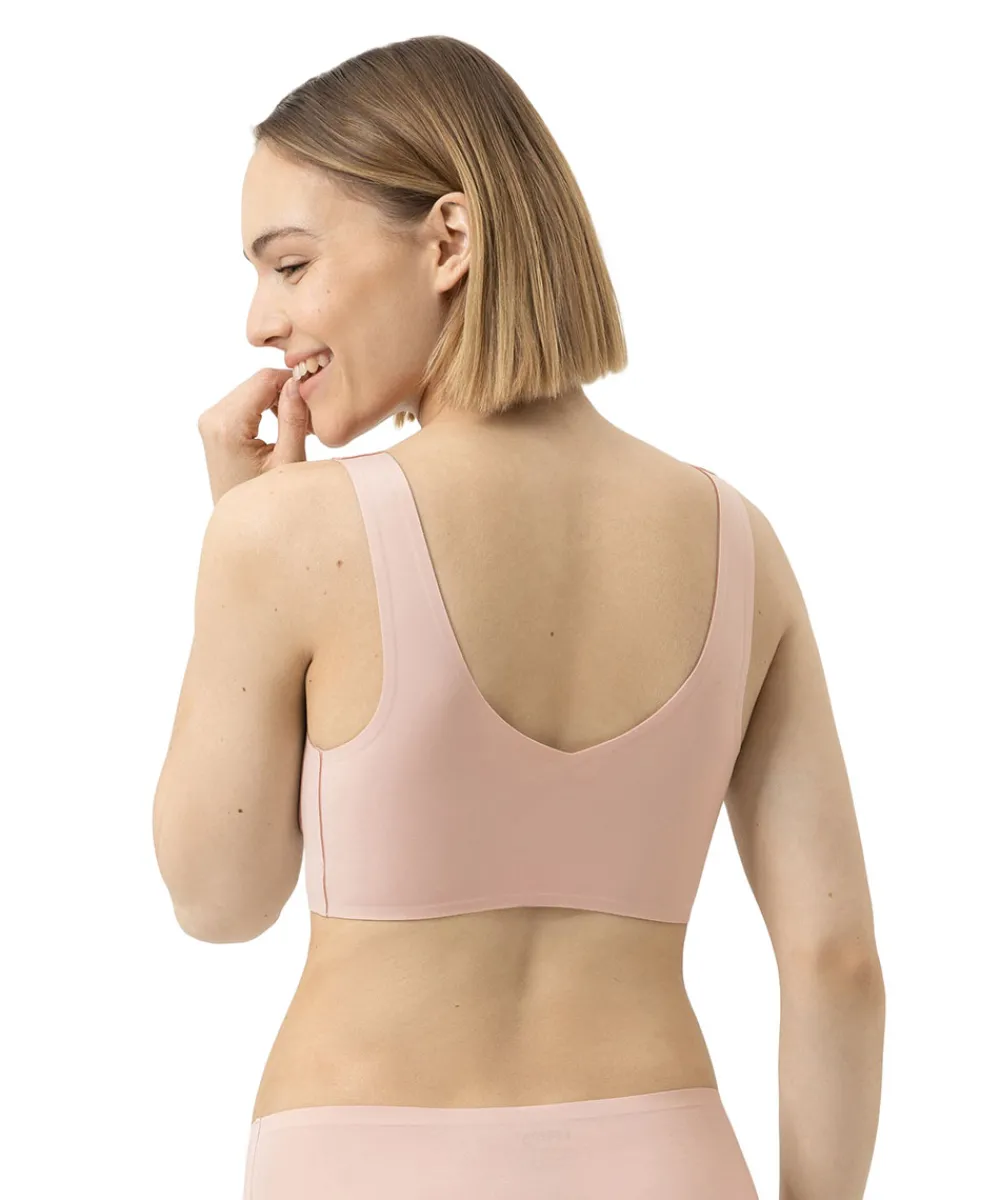 Blød bralette fra Mey. Braletten er lavet i åndbare og fleksible materialer, der får denne bralette til at føles bidrager med god støtte til din barm – selv uden bøjle. Bh-toppen har en let vattering, der giver barmen en pæn rund og jævn form, som nemt kan tages ud. Bh-toppen er sømløs og er derfor ideel under tætsiddende tøj. Bøjlefri bh’er eller bh’er uden bøjle er selvsagt bh’er der er lavet uden bøjle. Bh’er uden bøjle er særlig anvendelige til dig, der helst er fri for traditionelle bøjler. Materiale: 69% polyamid, 31% elastan