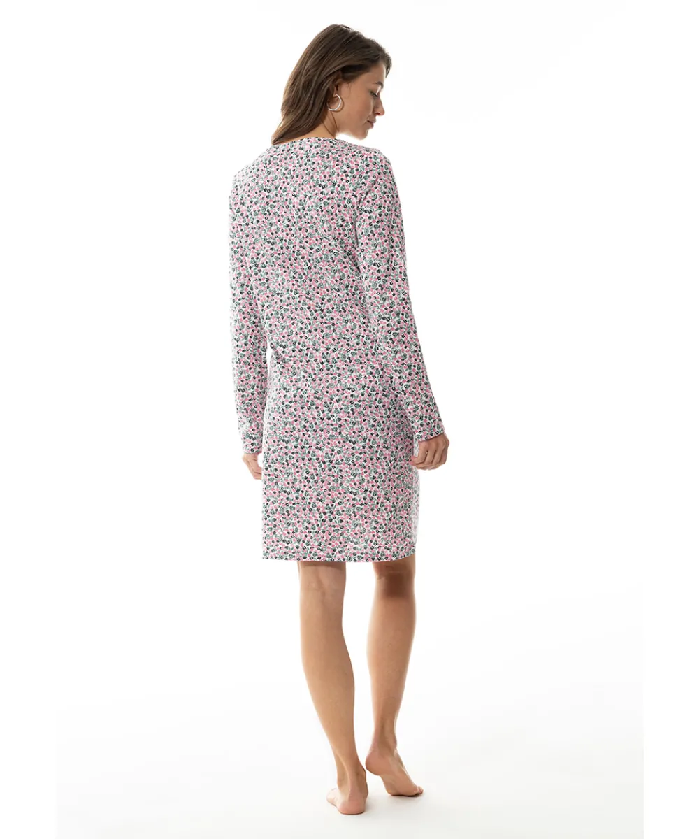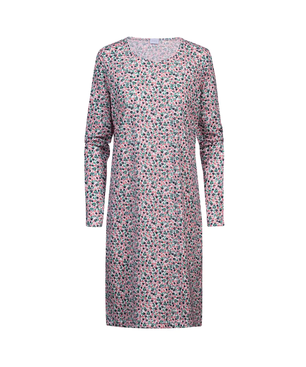Elegant, knælang natkjole fra Mey med lange ærmer. Natkjolen er designet i et skønt print. Natkjolen er lavet i en afslappet parform. Materiale: 100% bomuld.