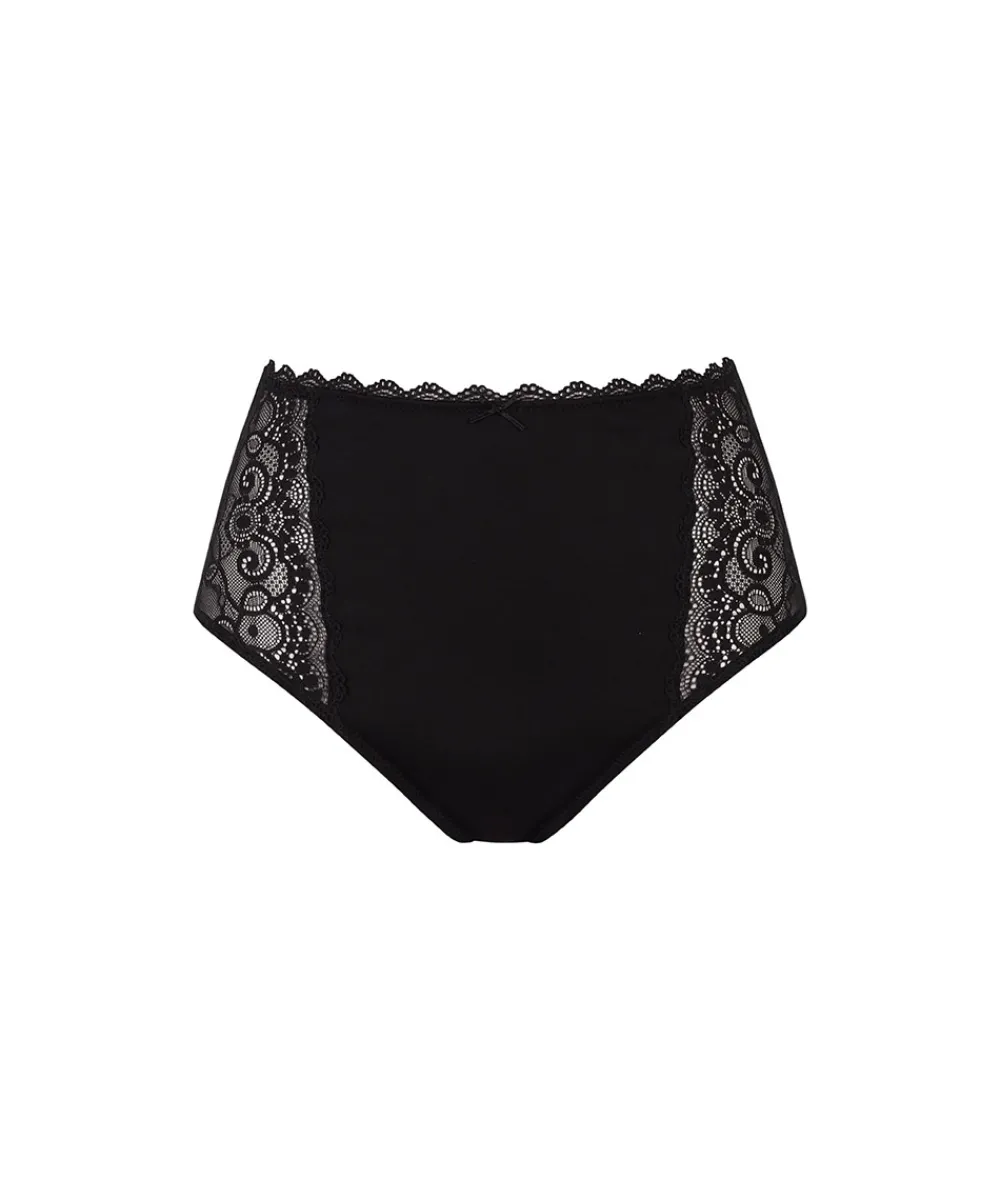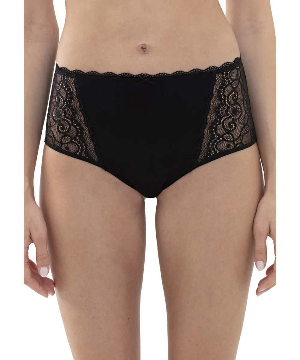 Yndige højtaljet trusse med blonde fra Mey. Maxitrussen er en højtaljet trusse med bredt sidestykke og lavt bensnit. Maxitrussen dækker den nederste del af maven og passer derfor godt til tøj, der går op i taljen. Materiale: 87% polyamid, 13% elastan; blonde: 77% polyamid, 23% elastan skridtkile: 100% bomuld.