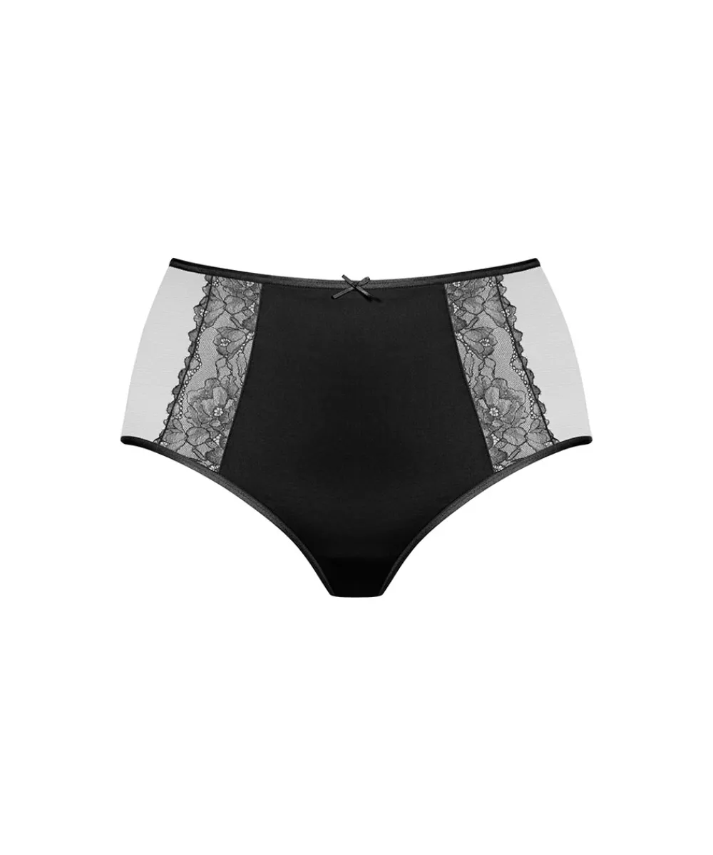 Højtaljet trusse fra Mey. Maxitrussen er en højtaljet trusse med bredt sidestykke og lavt bensnit. Maxitrussen dækker den nederste del af maven og passer derfor godt til tøj, der går op i taljen. Materiale: 87% polyamid, 13% elastan