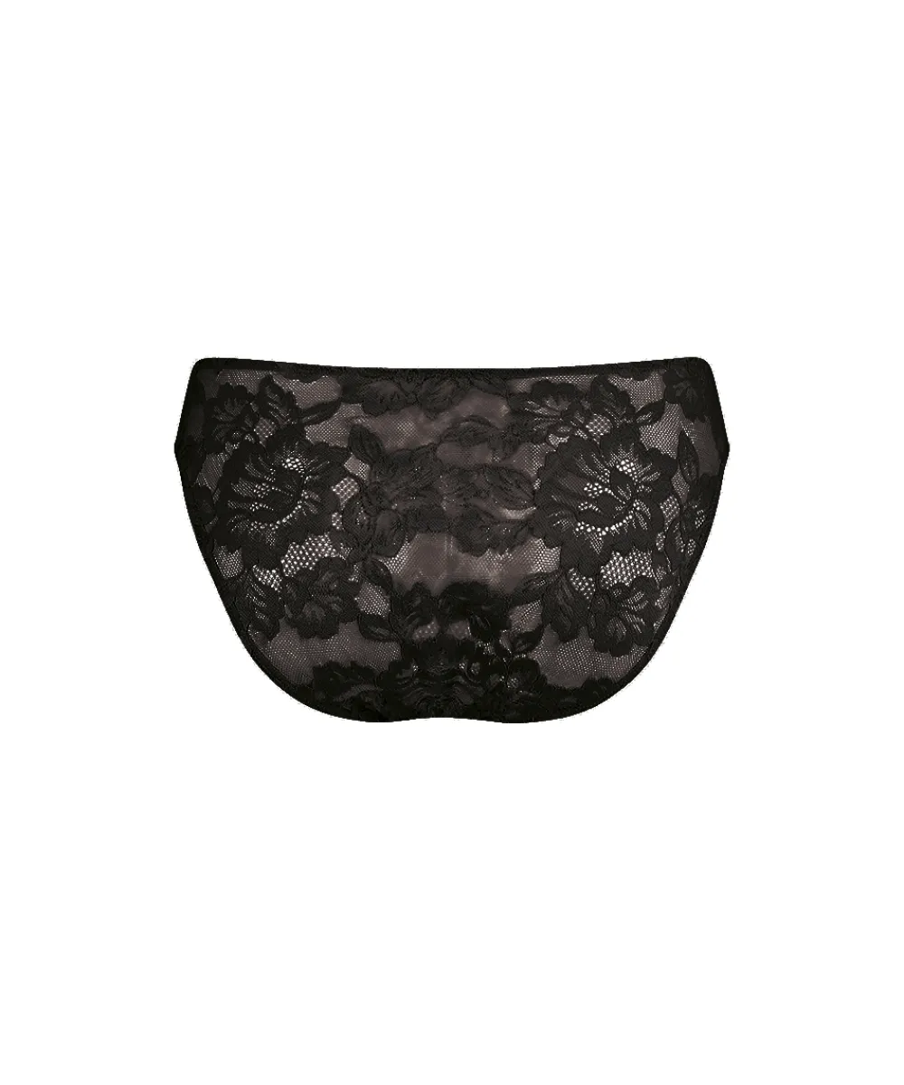 Elegant taitrusse med fin blomsterblonde i siderne og bagstykket. Trussen er har god pasform og er lavet i et blødt materiale.