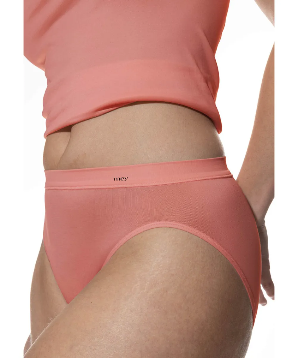 Komfortabel taitrusse fra Mey med høj blød linning og flade sømme. Trussen er lavet i en åndbar kvalitet. Taitrussen har et skråt snit bagpå og dækker det meste af balderne. Et højt bensnit fortil og et smalt sidestykke får benene til at syne længere – altså er modellen god til dig, der gerne vil fremhæve ben og tilføre optisk længde. Materiale: 50% viskose, 46% polyamid, 4% elastan.