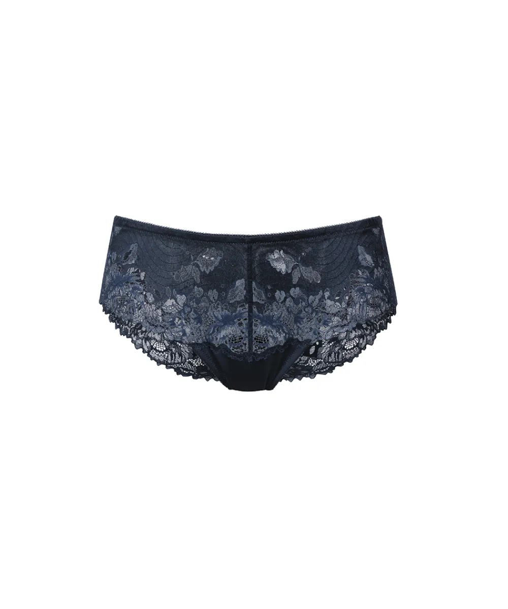 Hipstertrusse designet i en all-over blomsterblonde fra Mey. Trussemodellerne hipster og shorts har en vandret benudskæring. Hipstertrussen går lidt op på balden og tegner et vandret snit mens shortsene dækker hele balden. Materiale: 87% polyamid, 13% elastan; blonde: 60% polyamid, 31% polyester, 9% elastan.