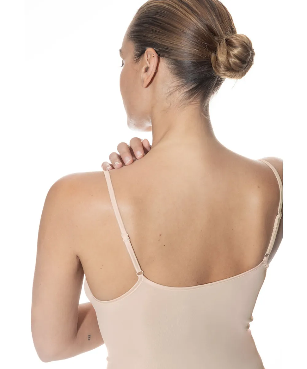 Behagelig og enkel top med rundudskæring og spaghetti stropper. Toppen er designet uden generende sidesømme, og lavet i en åndbar kvalitet. Materiale: 50% viskose, 46% polyamid, 4% elastan.