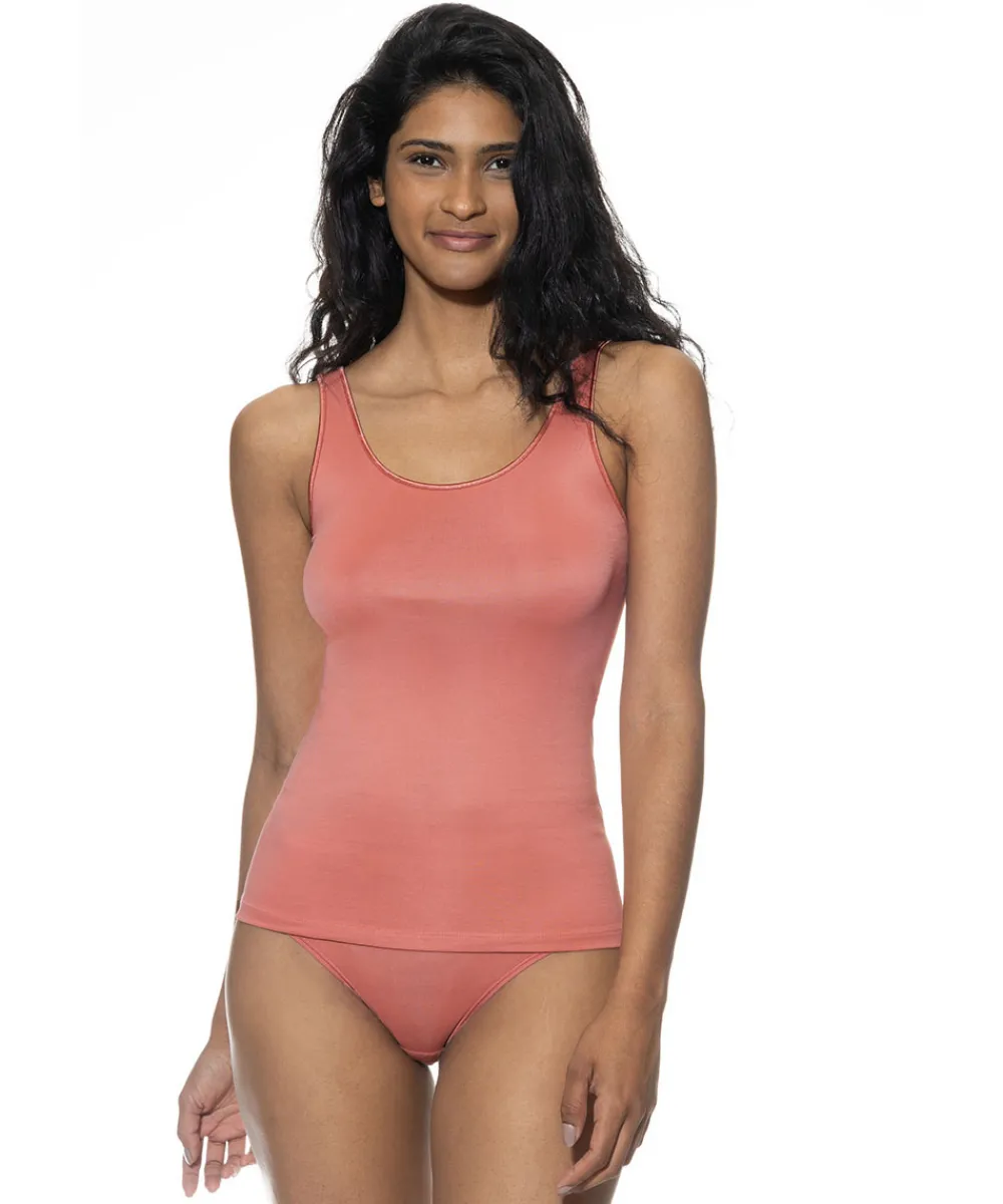 Behagelig og enkel top fra Mey med rund hals og brede stropper. Toppen er designet uden generende sidesømme, og lavet i en åndbar kvalitet. Toppen er ideel at bruge undertrøje eller under lette bluser, så man ikke føler sig så bar. Materiale: 50% viskose, 46% polyamid, 4% elastan.