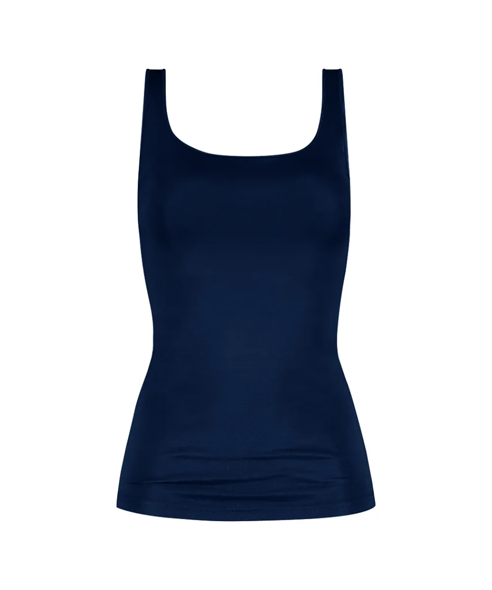 Behagelig og enkel top fra Mey med rund hals og brede stropper. Toppen er designet uden generende sidesømme, og lavet i en åndbar kvalitet. Toppen er ideel at bruge undertrøje eller under lette bluser, så man ikke føler sig så bar. Materiale: 50% viskose, 46% polyamid, 4% elastan.