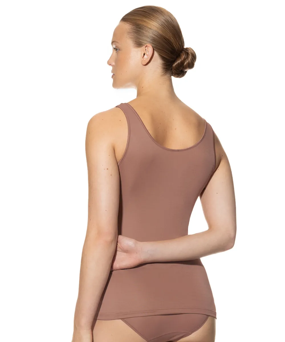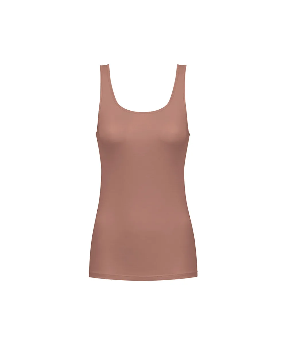 Behagelig og enkel top med rundudskæring og brede stropper. Toppen er designet uden generende sidesømme, og lavet i en åndbar kvalitet. Materiale: 50% viskose, 46% polyamid, 4% elastan.