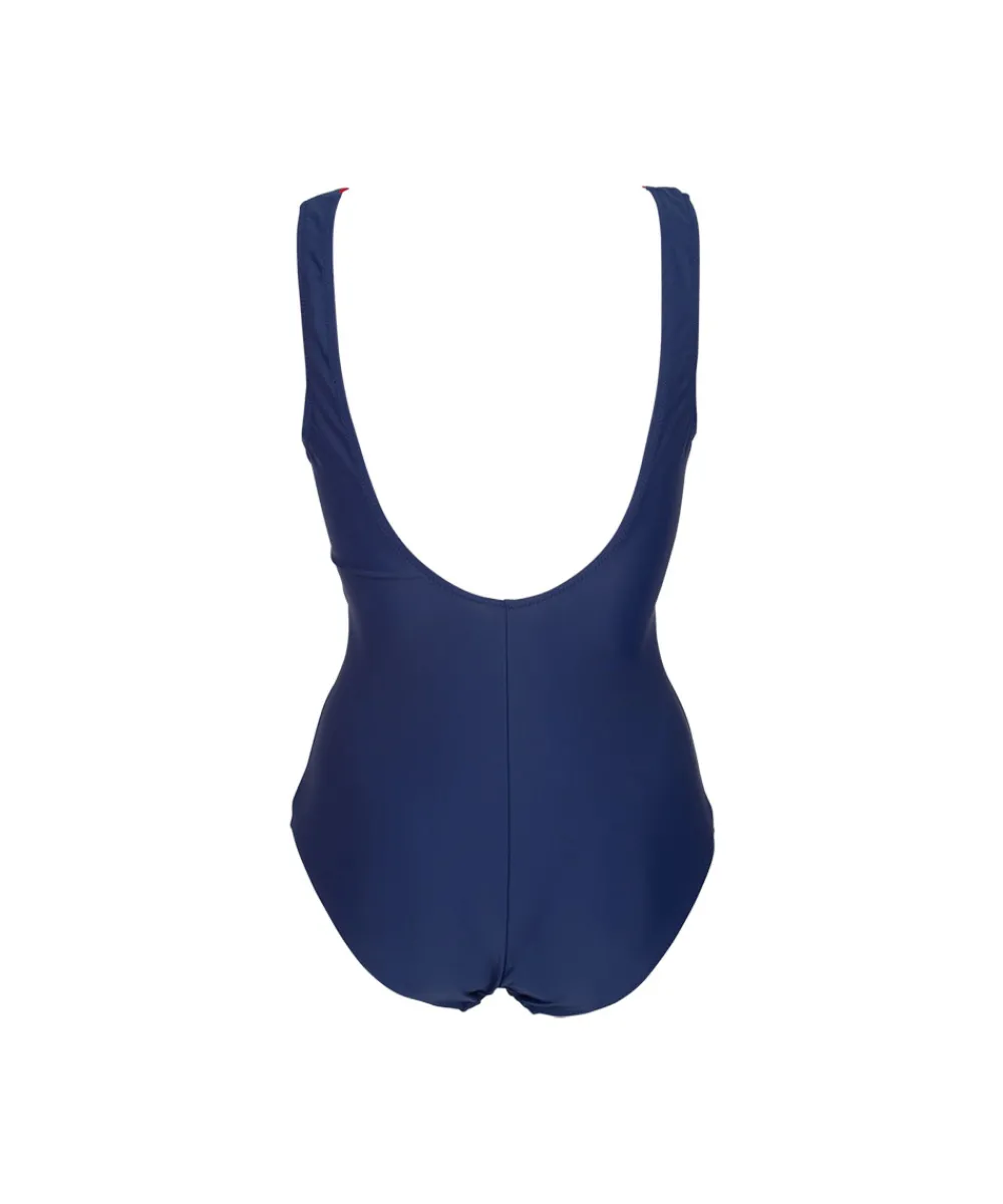 Klassisk badedragt med dyb udskæring på ryggen. Skålene er foret med bløde puder og er uden bøjle. Badetøj skal gerne sidde stramt, da det udvider sig ved brug. Husk altid at skylle badetøjet op i koldt vand efter brug. Materiale: 80% polyamid, 20% elastan.