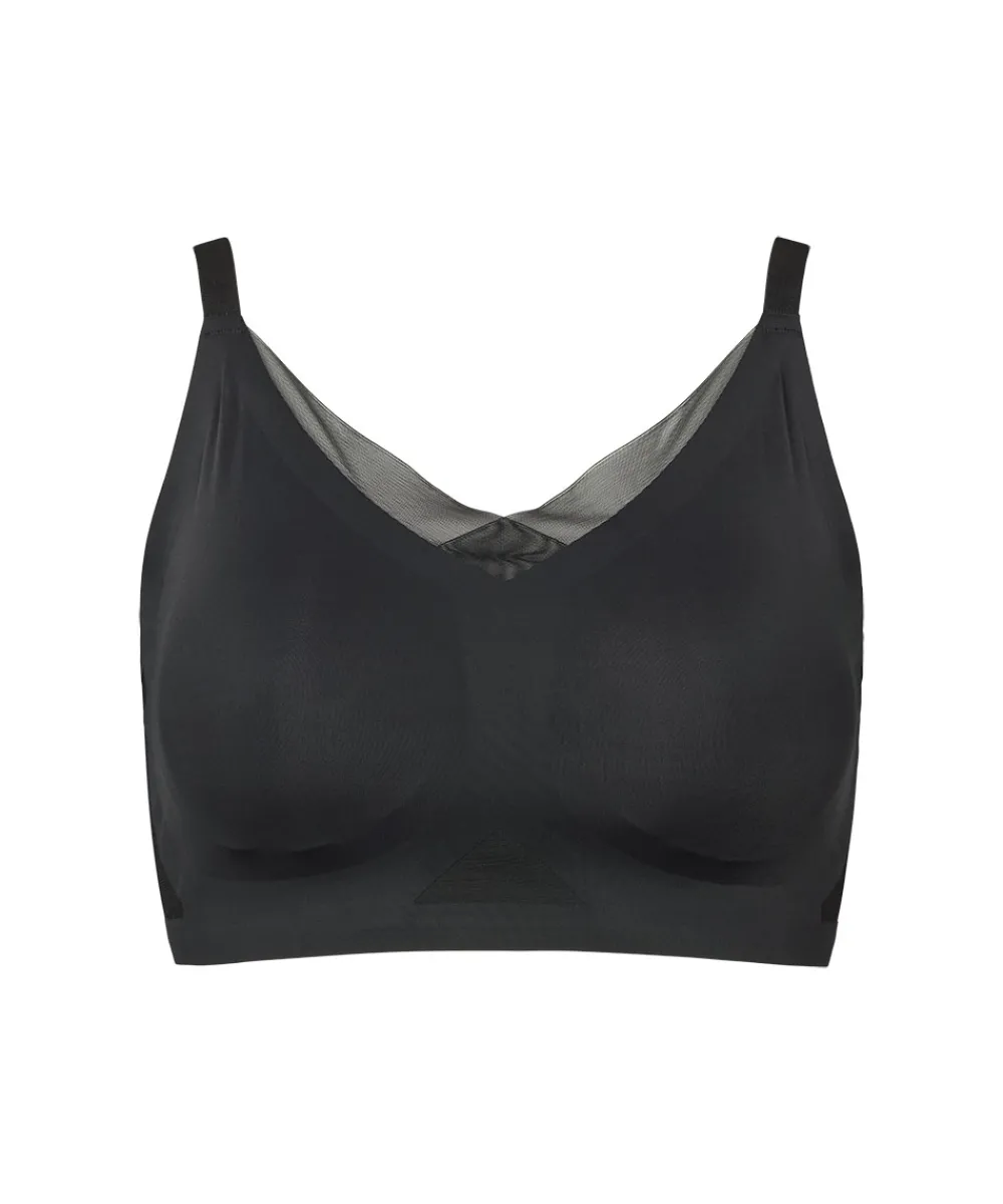 Super blød mikrofiber top fra Missya med smalle og justerbare stropper, der kan krydses på ryggen. Denne top er den perfekte basis top med sit sømløse finish og brede bånd i omkredsen. Trekantstoppen er designet uden bøjle i glat stof, som gør toppen ideel under tætsiddende tøj, da man ikke se kan bh’en. Materiale: 75% nylon 25% elastan