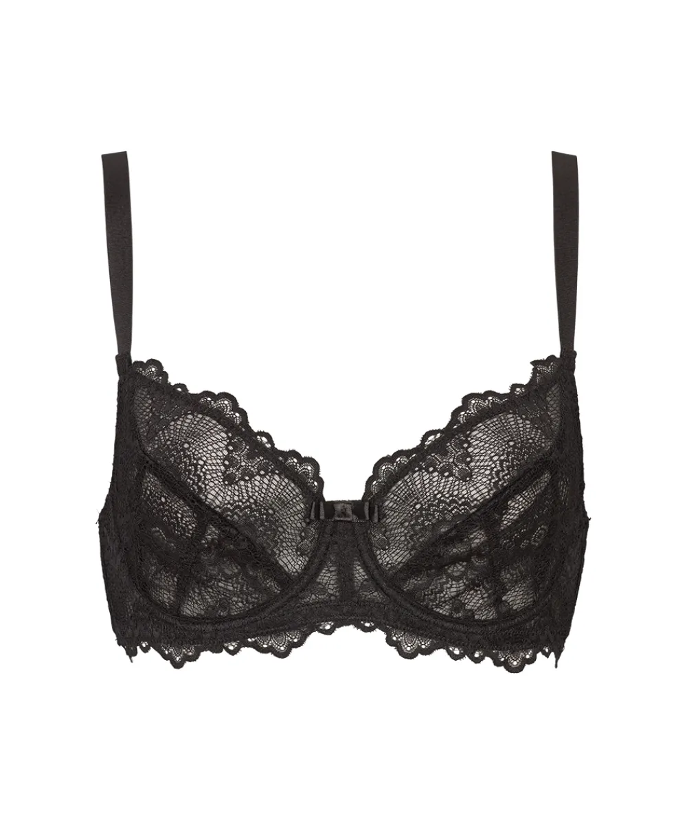 Yndig fuldskålsbh med bøjle. Bh’en er designet i en fin blonde. En fuldskålsbh dækker det meste af brystet og giver dermed et godt hold til barmen. Stropperne er placeret godt oppe på skuldrene og danner ofte et U på ryggen, så de ikke så let glider ned og så de samtidig giver et bedre hold. Bh’ens sider og rygstykke er ekstra forstærket for at give en bedre støtte til barmen. Fuldskålsbh’en er særlig god til kvinder med en større barm eller til dig, som, uanset størrelse, gerne vil have den optimale støtte og hold fra din bh. Materiale: 90% polyamid, 10% elastan.