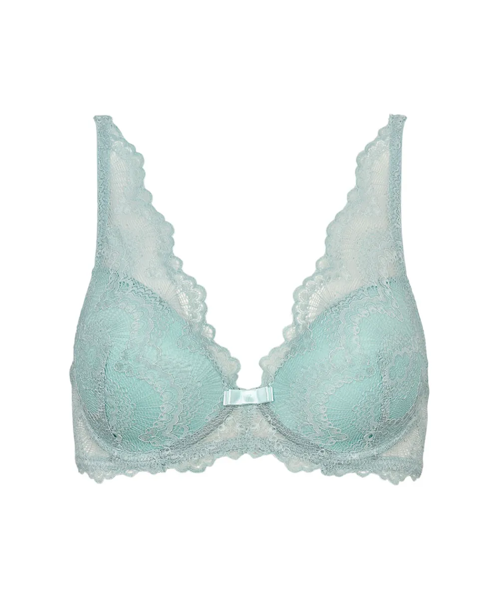 Elegant fuldskålsbh fra Missya med bøjle og formstøbt skål i blonde. Blonden dækker bh’en hele vejen rundt, følger op ad stroppen til skulderen og dækker barmen som en fuldskål, hvilket giver bh’en feminine detaljer samt en god pasform, som er ideel også for en større barm. Materiale: 90% polyamid, 10% elastan.