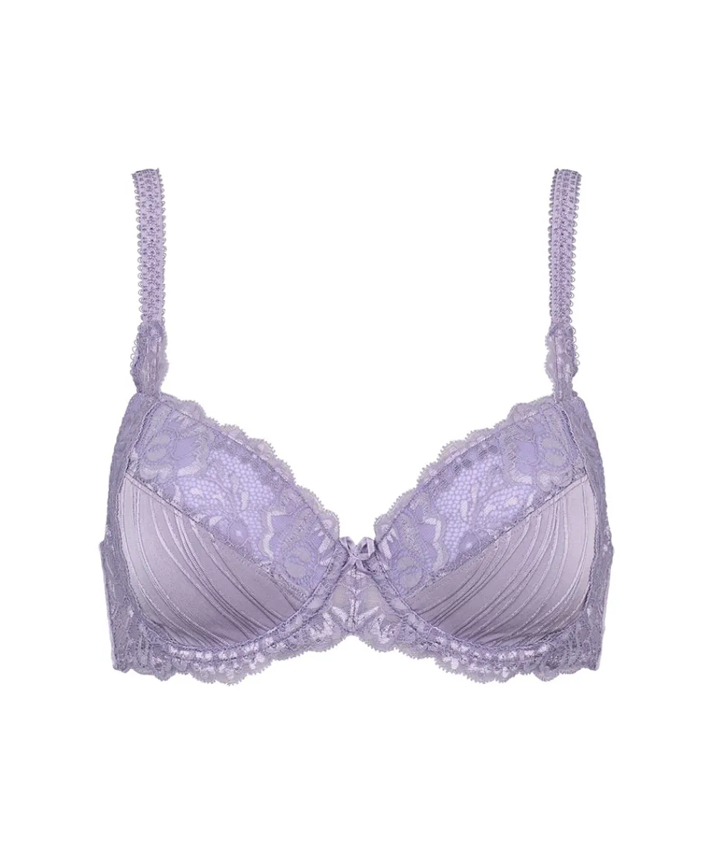 Yndig fuldskålsbh fra Missya med vatterede skåle og bøjle. Bh’en har formstøbt fuldskål, som især er god til en større barm. Fuldskålsbh’en er designet med blonder og jacquard strikket materiale på skålen samt flotte stropper med picot kant. En fuldskålsbh dækker det meste af brystet og giver dermed et godt hold til barmen. Stropperne er placeret godt oppe på skuldrene, så de ikke så let glider ned og så de samtidig giver et bedre hold. Bh’ens sider og rygstykke er ekstra forstærket for at give en bedre støtte til barmen. Materiale: 85% polyamid, 15% elastan.