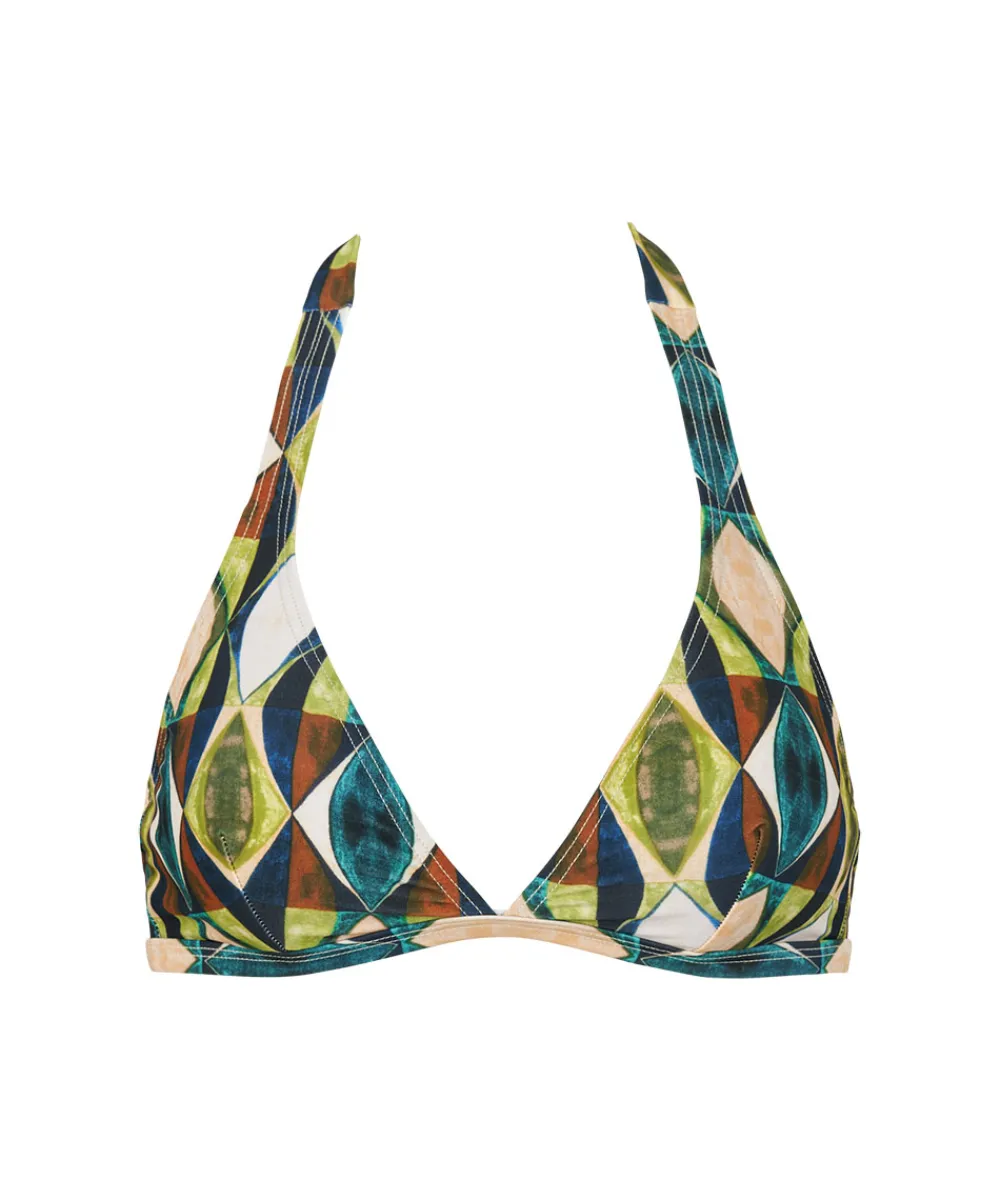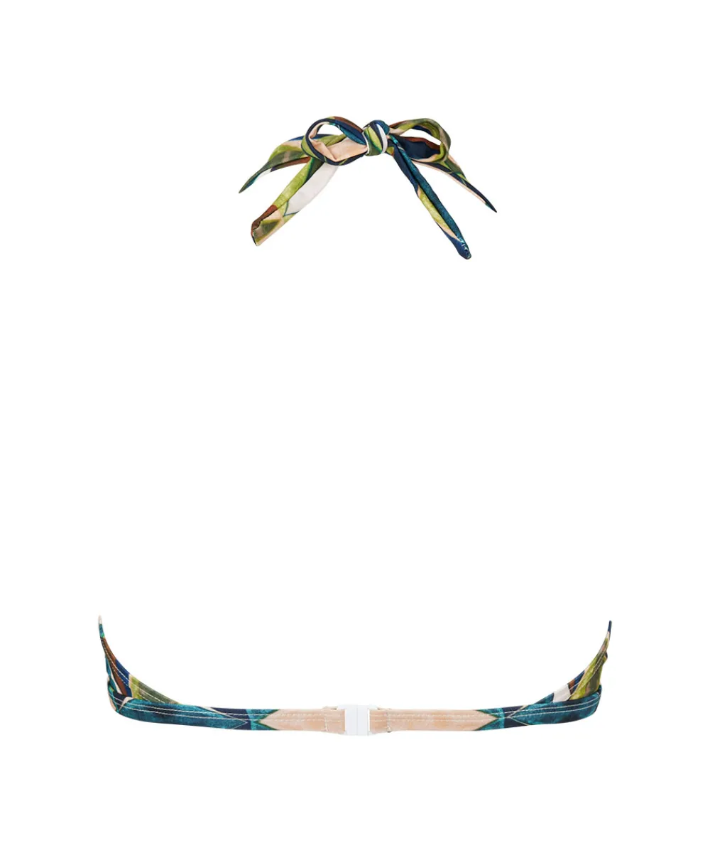 Fin trekantstop i smukt print fra Missya. Bikinitoppen har vatteret skåle og er uden bøjle. Badetøj skal gerne sidde stramt, da det udvider sig ved brug. Husk altid at skylle badetøjet op i koldt vand efter brug. Materiale: 80% polyamid, 20% elastan.