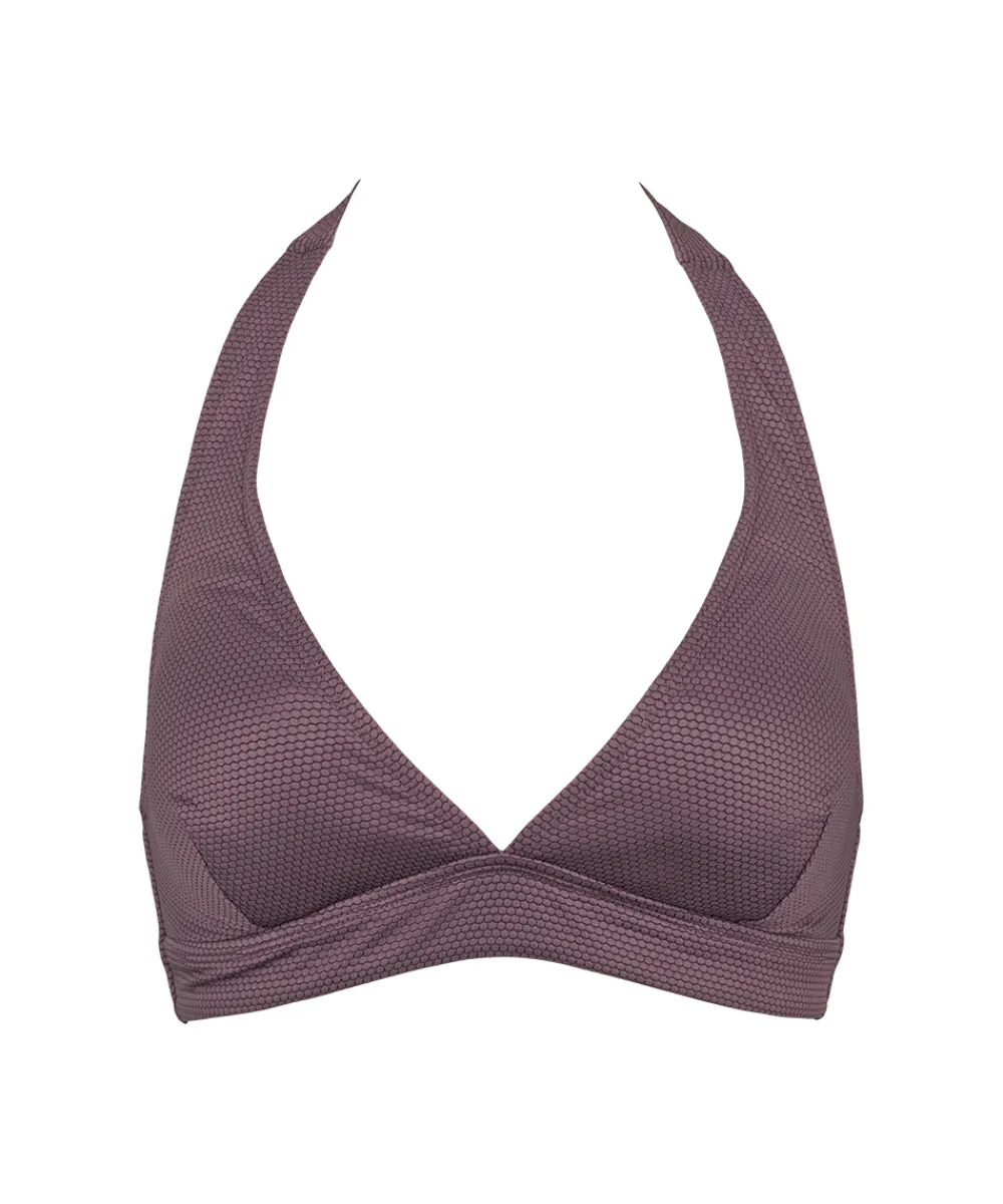 Fin bikinitop fra Missya med stropper der skal bindes i nakken. Bikinitoppen har vatterede skåle og er uden bøjle. Badetøj skal gerne sidde stramt, da det udvider sig ved brug. Husk altid at skylle badetøjet op i koldt vand efter brug. Materiale: 80% polyamid, 20% elastan.