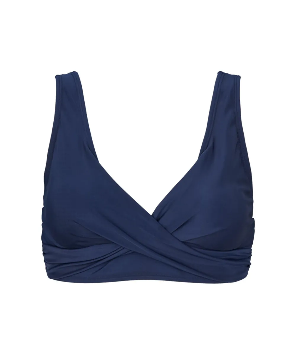 Trendy trekantsbikini fra Missya, let vatterede skåle og knude-detalje i midten. Bikinitoppen er designet uden bøjle. Badetøj skal gerne sidde stramt, da det udvider sig ved brug. Husk altid at skylle badetøjet op i koldt vand efter brug. Materiale: 80% polyamid, 20% elastan.