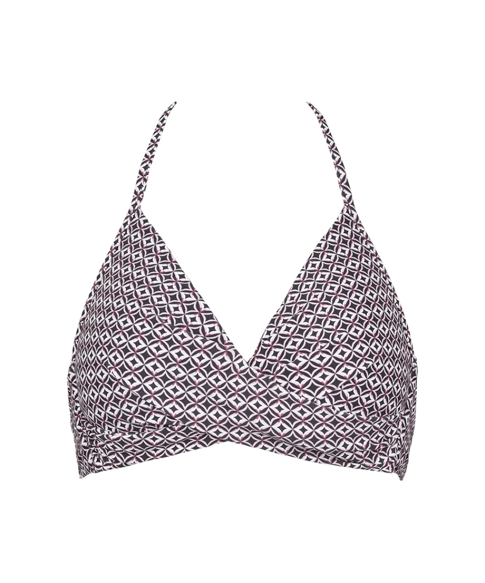 Fin bikini trekanttop fra Missya med bindebånd i nakken. Bikinitoppen har let vatterede skåle. Badetøj skal gerne sidde stramt, da det udvider sig ved brug. Husk altid at skylle badetøjet op i koldt vand efter brug. Materiale: 80% polyamid, 20% elastan.