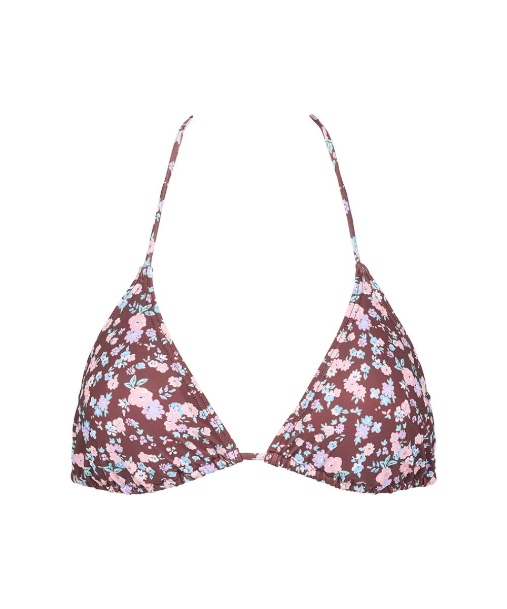 Fin trekantet bikinitop fra Missya med print og let vatterede skåle. Badetøj skal gerne sidde stramt, da det udvider sig ved brug. Husk altid at skylle badetøjet op i koldt vand efter brug. Materiale: 82% polyester, 18% elastan.