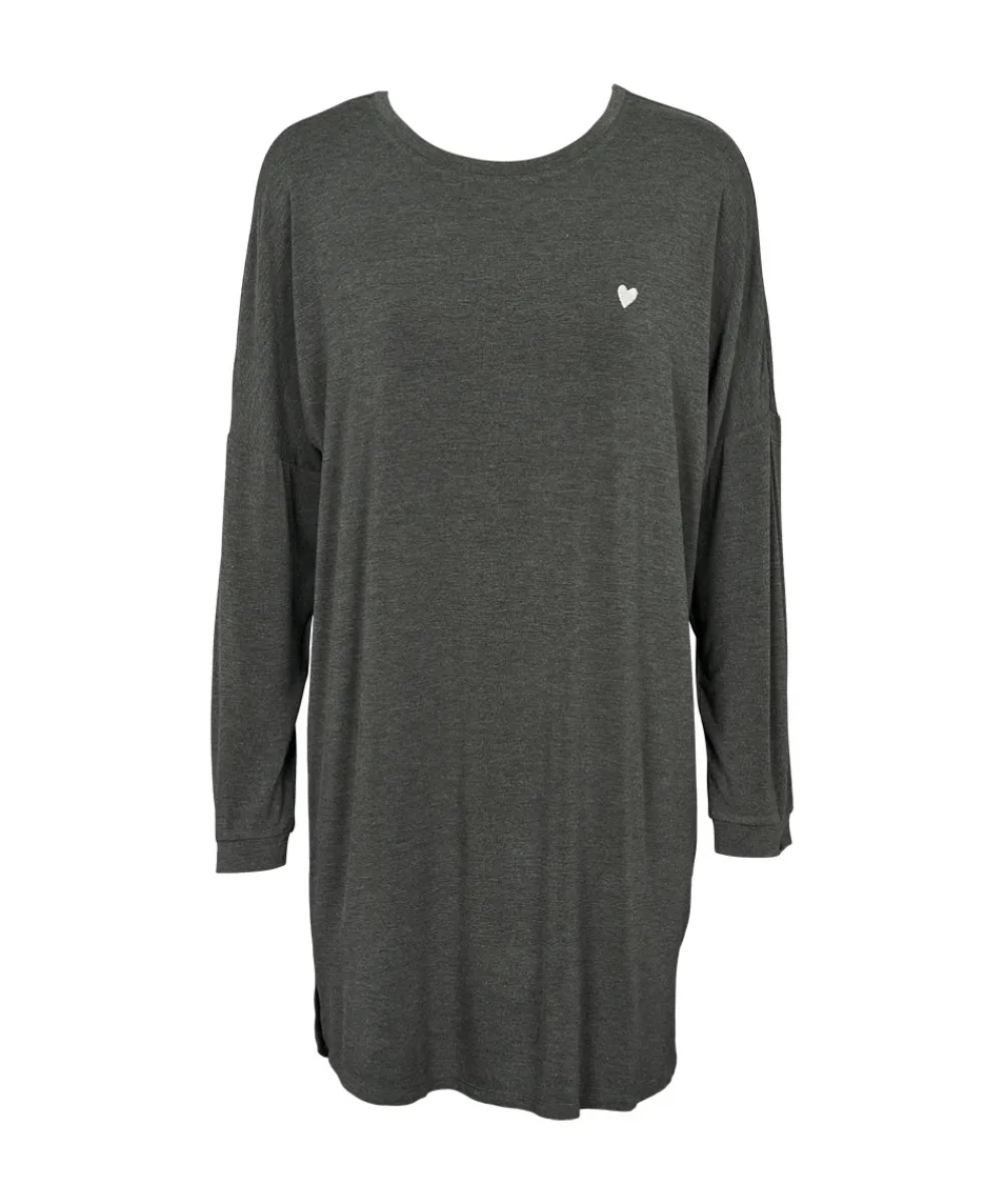 Behagelig oversize natkjole fra Missya med lange ærmer. Natkjolen er designet med et broderet hjerte på brystet og lav…
