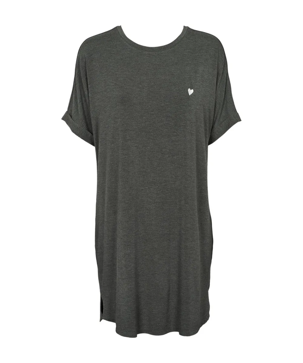 Behagelig oversize natkjole fra Missya med korte ærmer. Natkjolen er designet med et broderet hjerte på brystet og lav…