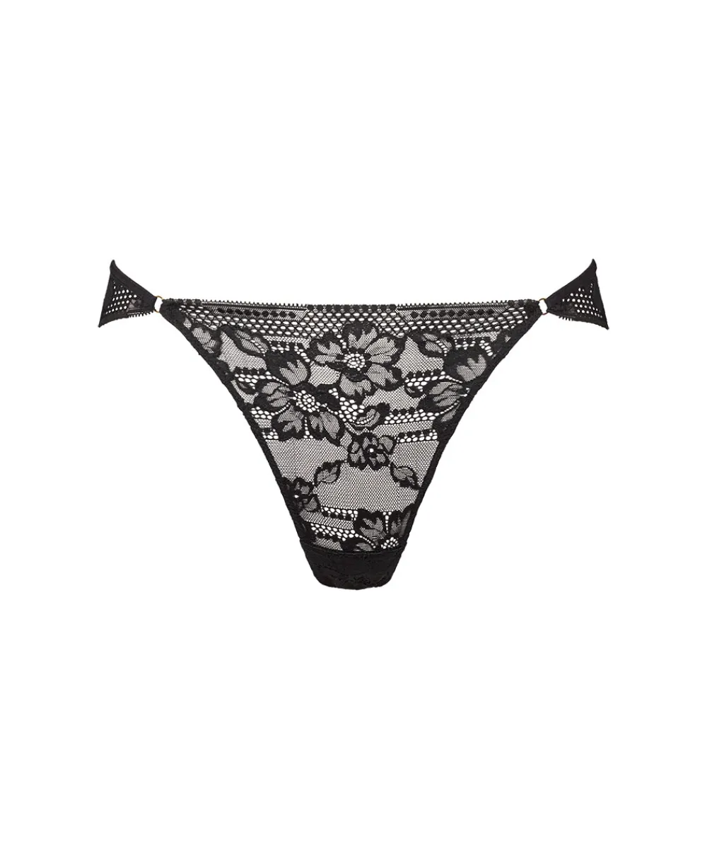 Braziliansk trusse fra Missya. Trussen er designet med et smalt sidestykke, der får benene til at syne længere. Trussen er dekoreret med yndige blonder, og har et flatterende snit. Materiale: 83% polyamid, 12% elastan, 5% bomuld.