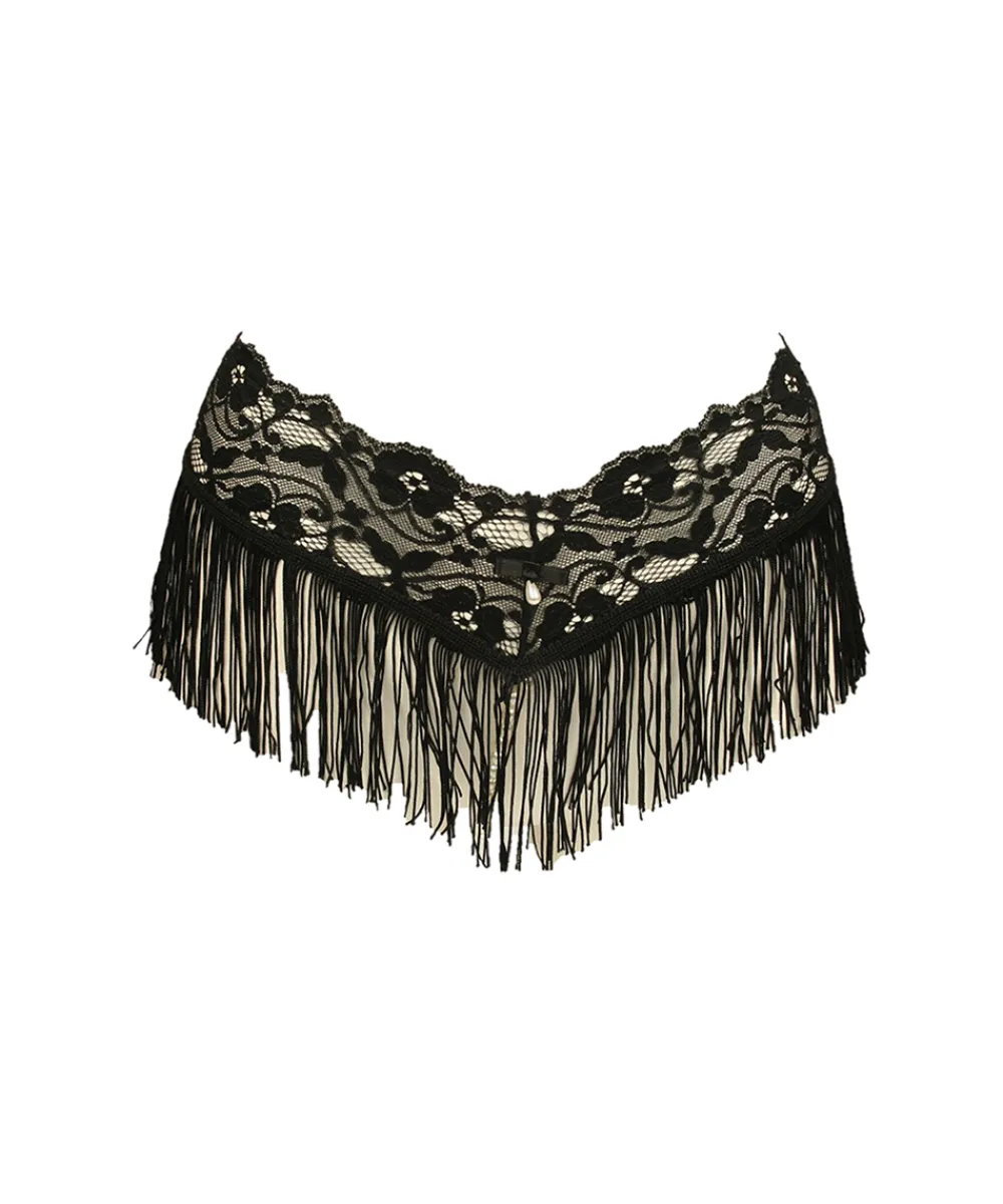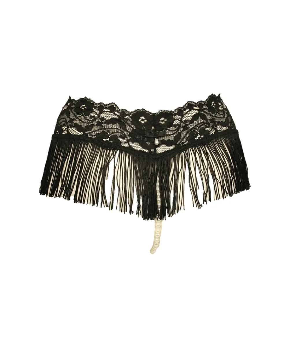 Flatterende stringtrusse fra Missya, som er designet med perlekæde og frynser. Materiale: 90% polyamid, 10% elastan.