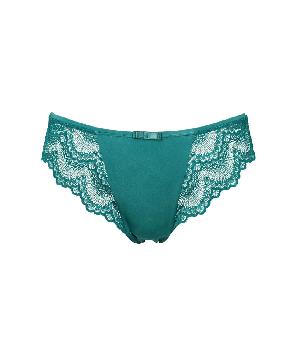 Elegant taitrusse fra Missya designet med en fin blonde på trussens side- og bagstykke. Taitrussen er den bedstsolgte og mest almindelige trussetype. Taitrussen har som regel et skråt snit bagpå og dækker det meste af balderne. Et højt bensnit fortil og et smalt sidestykke får benene til at syne længere – altså er modellen god til dig, der gerne vil fremhæve ben og tilføre optisk længde. Materiale: 90% polyamid, 10% elastan.