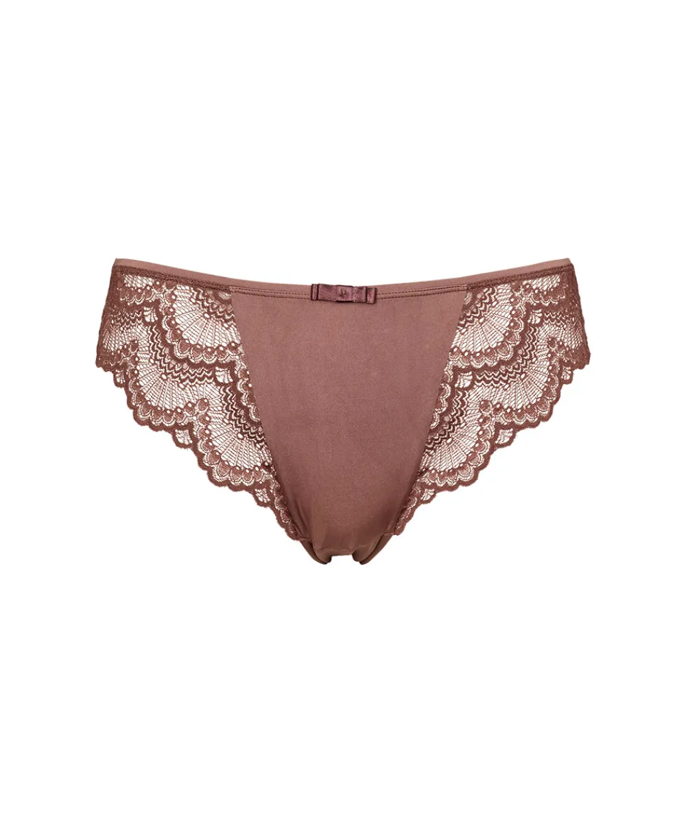 Elegant taitrusse fra Missya designet med en fin blonde på trussens side- og bagstykke. Taitrussen er den bedstsolgte og mest almindelige trussetype. Taitrussen har som regel et skråt snit bagpå og dækker det meste af balderne. Et højt bensnit fortil og et smalt sidestykke får benene til at syne længere – altså er modellen god til dig, der gerne vil fremhæve ben og tilføre optisk længde. Materiale: 90% polyamid, 10% elastan.