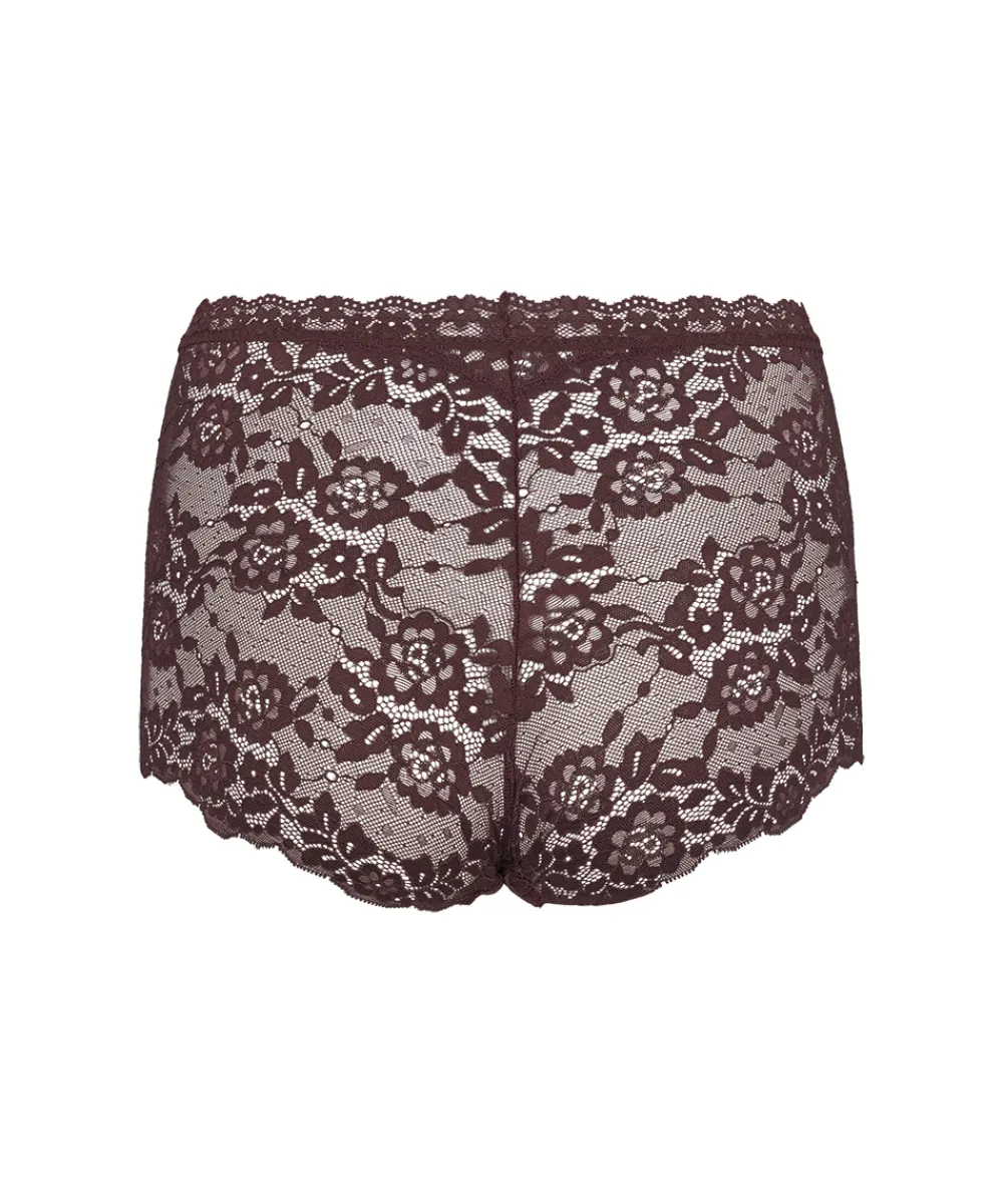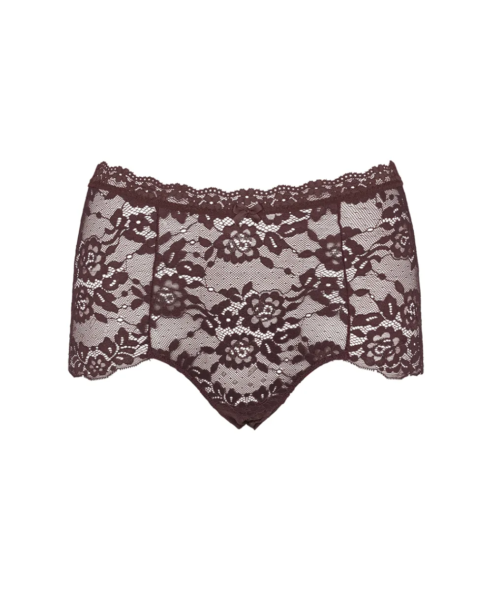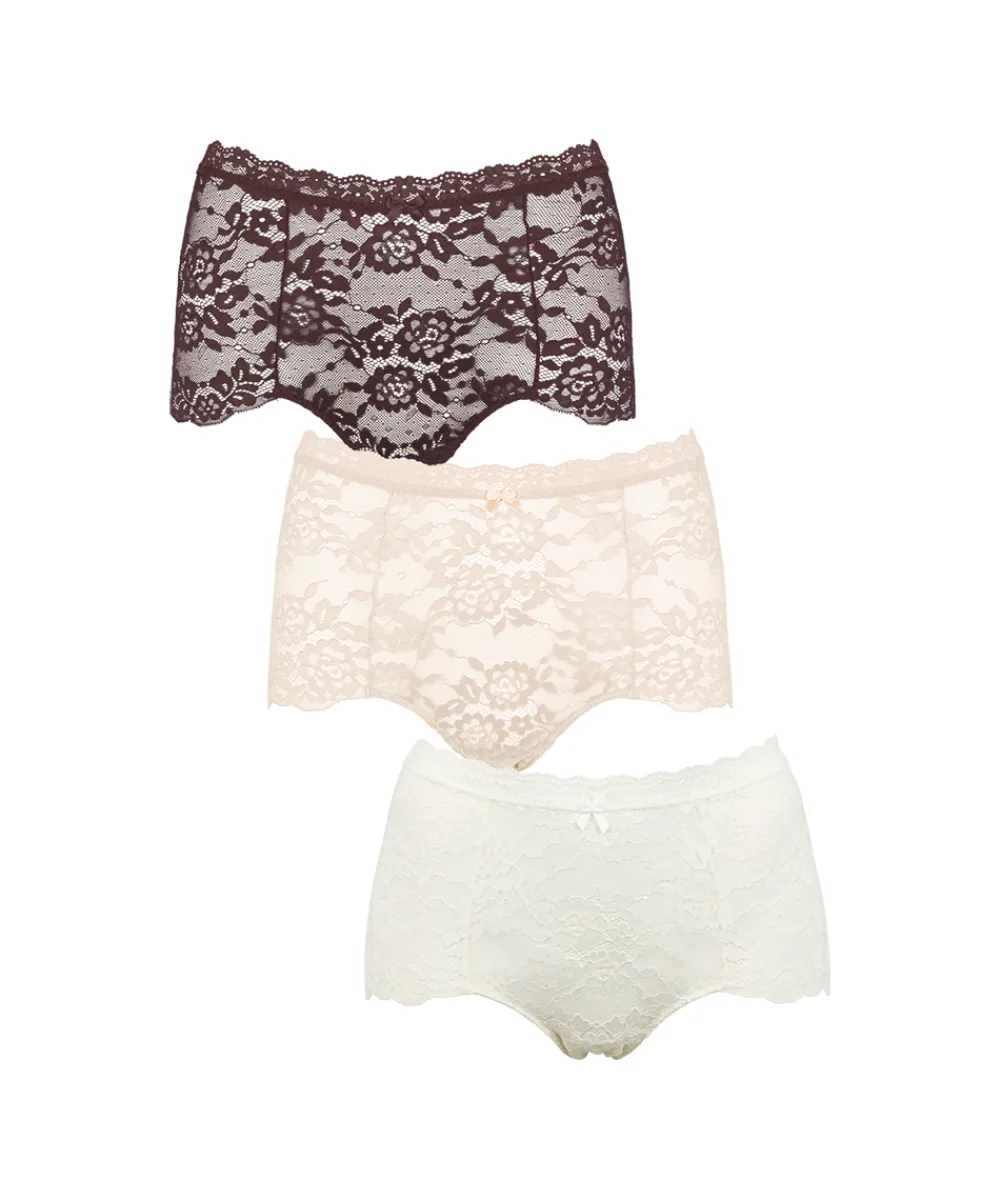 3. paks højtaljet blondetrusser fra Missya. Maxitrussen er en højtaljet trusse med bredt sidestykke og lavt bensnit. Maxitrussen dækker den nederste del af maven og passer derfor godt til tøj, der går op i taljen. Materiale: 85% polyamid, 15% elastan.