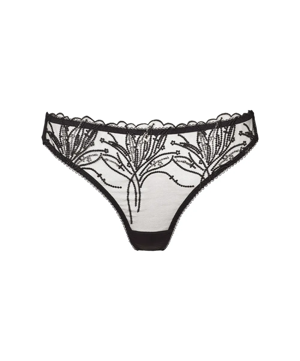Smuk stringtrusse fra Missya designet i mesh med brodering. String og tangatrusser er særligt velegnede under tætsiddende bukser, kjoler og nederdele, da bagstykket – en tynd streng mellem balderne – ikke efterlade synlige overgange under tøjet. String og tangatrusserne har en høj benudskæring og får derfor dine ben til at syne optisk længere. Materiale: 65% polyamid, 30% polyester, 5% elastan.