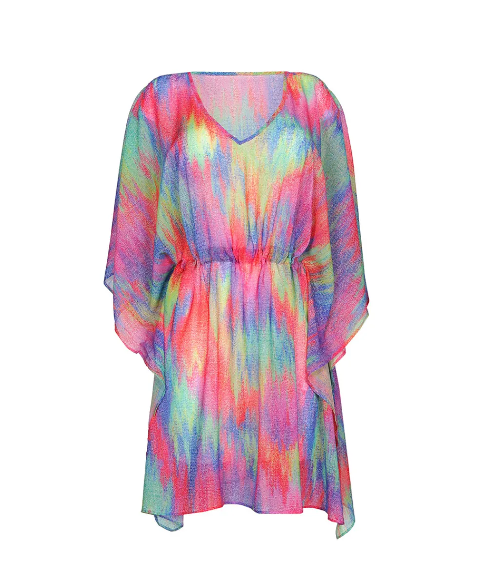 Behagelig og yndig strandkjole PrimaDonna med korte ærmer. Kaftan kan bruges udover dit badetøj til stranden eller poolen. Materiale: 100% polyester