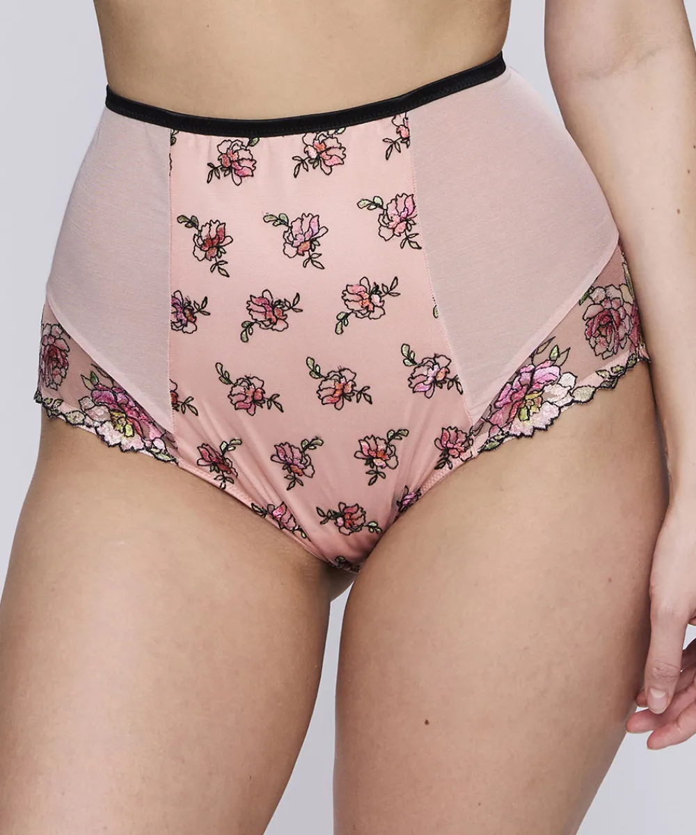 Forførende højtaljet taitrusse fra PrimaDonna i en elegant og komfortabel pasform, hvor den høje talje dækker maven. Bagstykket er designet med sexet detaljer og frontstykket er prydet med yndige blomsterbroderinger. Maxitrussen er en højtaljet trusse med bredt sidestykke og lavt bensnit. Maxitrussen dækker den nederste del af maven og passer derfor godt til tøj, der går op i taljen. Materiale: 45% polyamid 33% polyester 16% elastan 6% bomuld