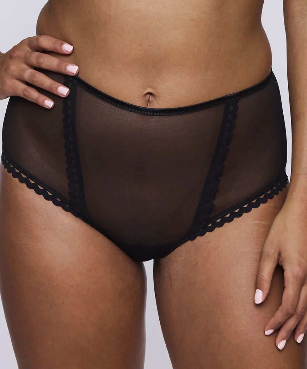 Højtaljet hipstertrusse fra PrimaDonna Twist. Trusserne er designet med striber i mesh og smukke blondeafslutninger. Tr…