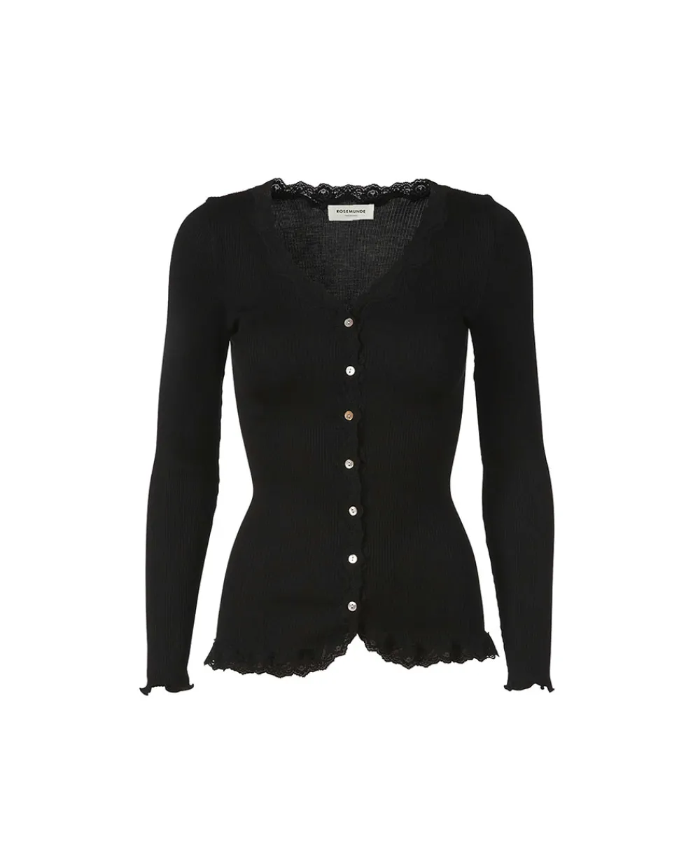 Rosemunde Top/ Loungeshirt/ Pyjamas<010 BLACK – Silk Cardigan Regular Ls W/Rev Vin