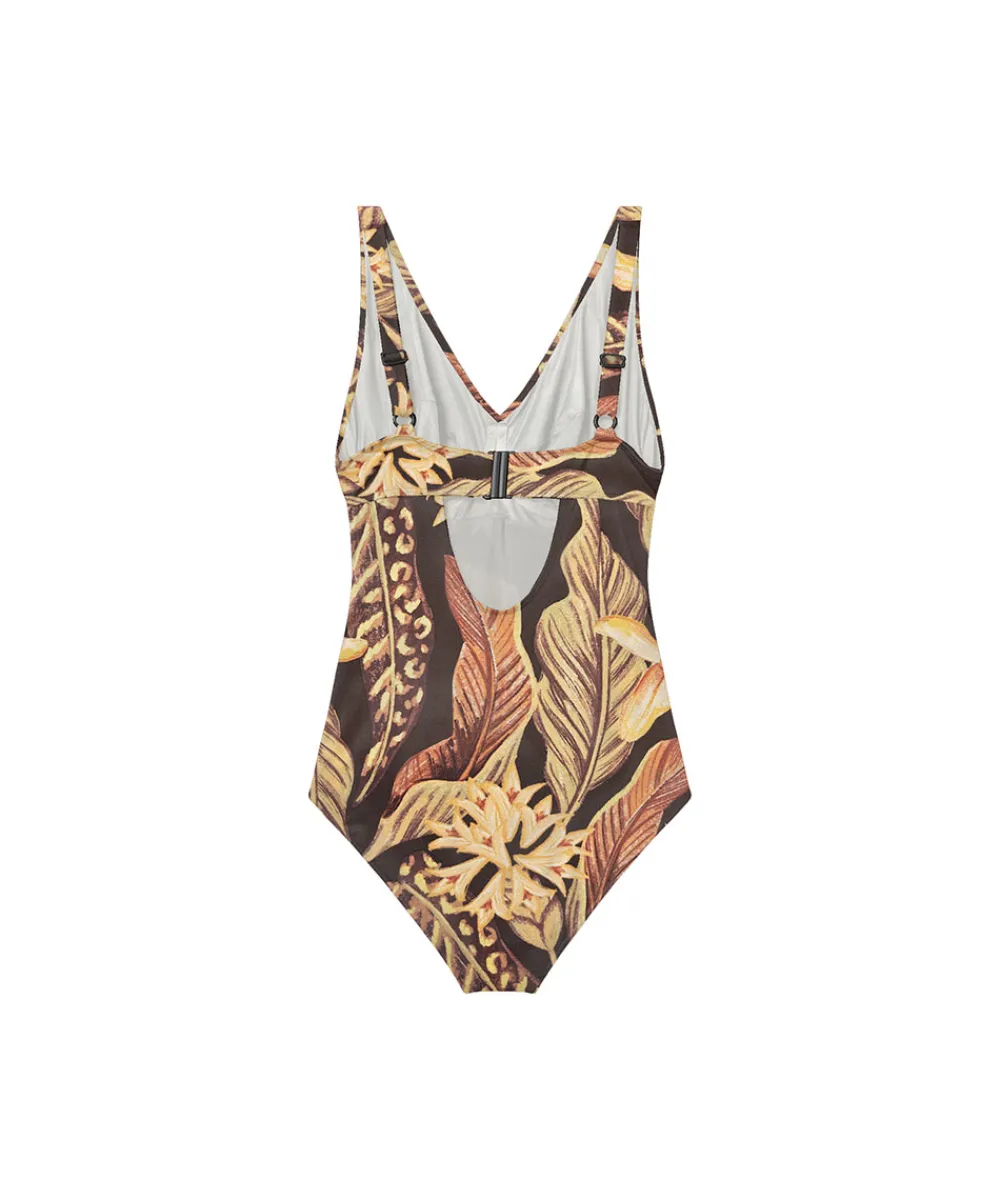 Elegant badedragt fra Saltabad med draperinger. Serien i dette print sælges eksklusivt hos Wunderwear. Badedragten har indbygget bøjle. Badetøj skal gerne sidde stramt, da det udvider sig ved brug. Husk altid at skylle badetøjet op i koldt vand efter brug. Materiale: 80% polyamid, 20% elastan.
