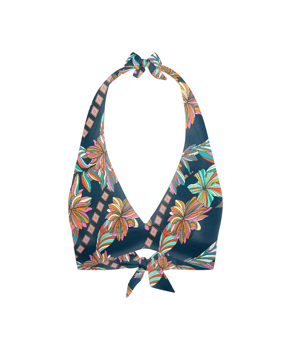 Fin halterneck bikinitop fra Saltabad. Bikinioverdelen er uden bøjle og har udtagelig vattering. Badetøj skal gerne sidde stramt, da det udvider sig ved brug. Husk altid at skylle badetøjet op i koldt vand efter brug. Materiale: 92% polyamid, 8% elastan.