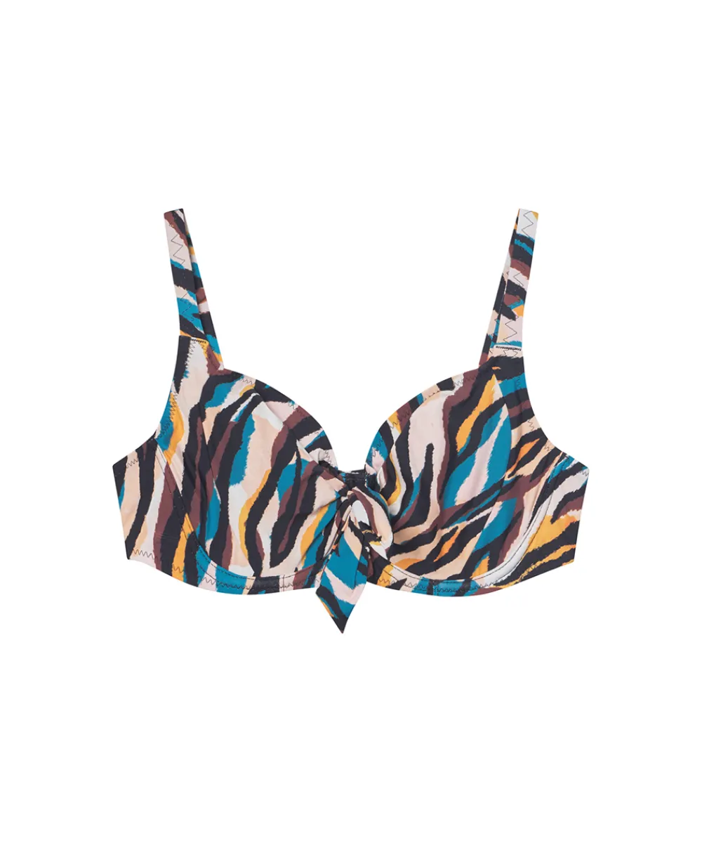 Fin fuldskålsbikinitop fra Saltabad med en dekorativ knude. Bikinioverdelen er designet uden vattering og har bøjle. Badetøj skal gerne sidde stramt, da det udvider sig ved brug. Husk altid at skylle badetøjet op i koldt vand efter brug. Materiale: 85% polyamid, 15% elastan