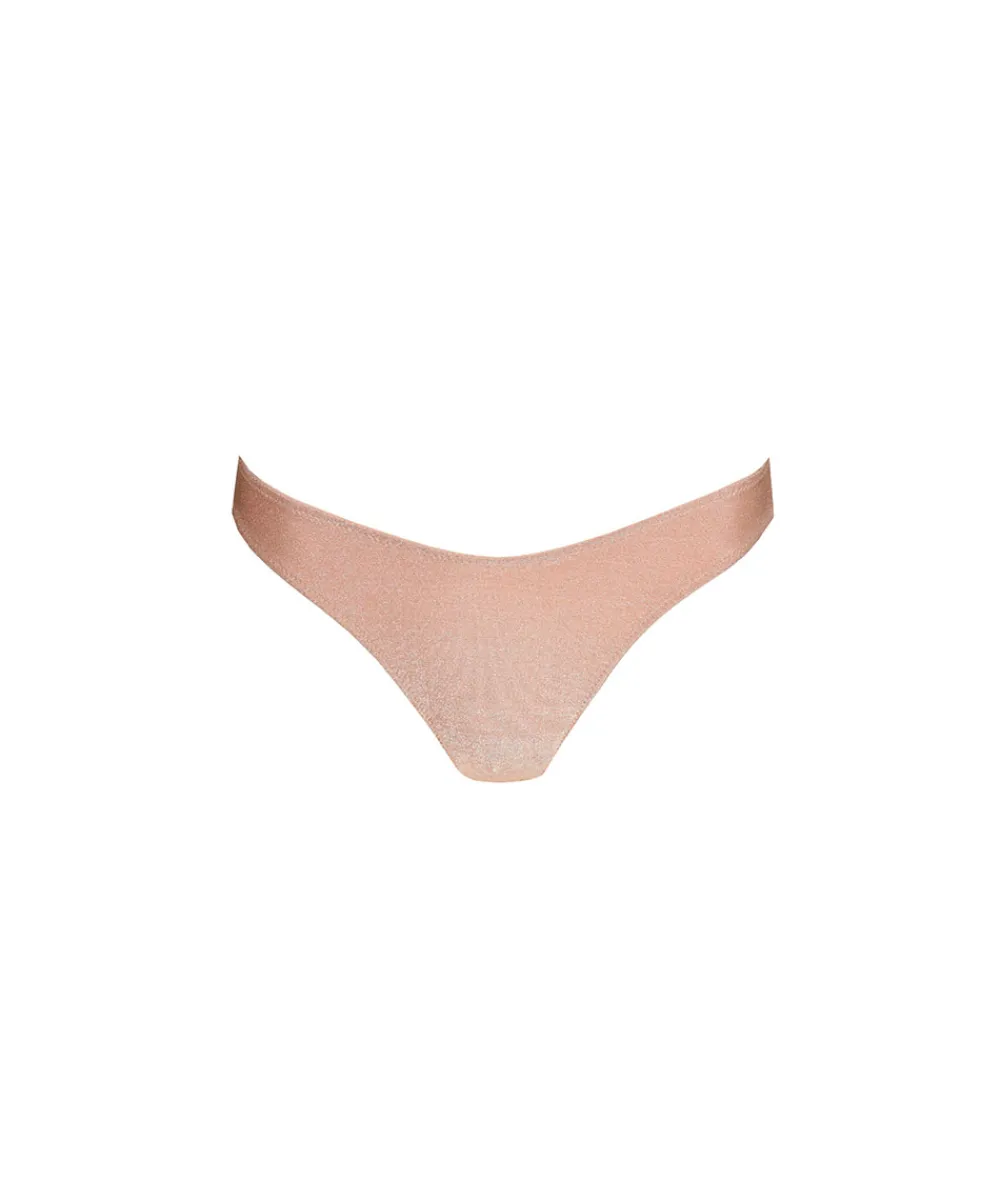 Elegant brazilian fra Sarda, lavet i skinnende materiale. Den brasilianske trusse er lavet i et ultrablødt, skinnende materiale, hvor linningerne er afsluttet med smukke Sarda-broderede blonder. Du får med denne trusse mere dække end med en stringtrusse, men bevarer det forførende udtryk. Den brasilianske trusse har samme egenskaber om taitrussen, som er den bedstsolgte og mest almindelige trussetype. Taitrussen har som regel et skråt snit bagpå og dækker det meste af balderne. Et højt bensnit fortil og et smalt sidestykke får benene til at syne længere – altså er modellen god til dig, der gerne vil fremhæve ben og tilføre optisk længde. Materiale: 71% polyamid, 12% metalliske fibre, 12% bomuld, 5% elastan