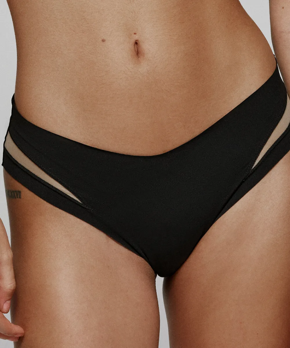 Sporty taitrusse fra Sarda med smukke meshdetaljer. Taitrussen er designet med sporty-men seriøst sexede grafiske linjer foran. Sømløst stof og meshpaneler på uventede steder gør disse trusser til det perfekte match til bh eller top fra Avit-serien. Trussens bagstykker er designet i opakt materiale. Taitrussen er den bedstsolgte og mest almindelige trussetype. Taitrussen har som regel et skråt snit bagpå og dækker det meste af balderne. Et højt bensnit fortil og et smalt sidestykke får benene til at syne længere – altså er modellen god til dig, der gerne vil fremhæve ben og tilføre optisk længde. Materiale: 69% polyamid, 25% elastan, 6% bomuld