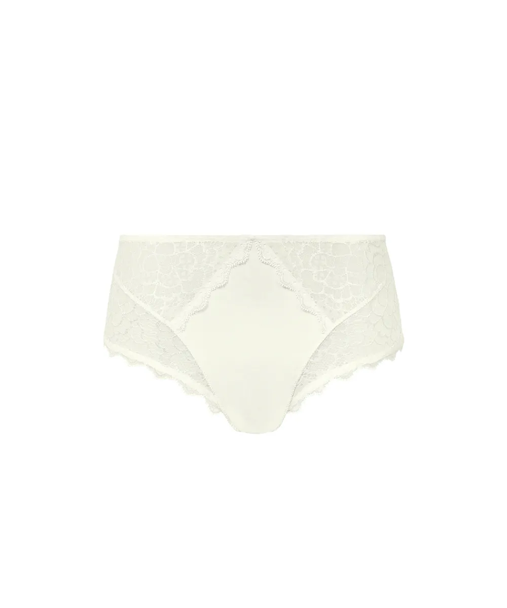 En højtaljet taitrusse, der både er elegant og komfortabel. Bomuldsforingen gør trussen ekstra behagelig. Frontstykket er forstærket med en bomuld- og mikrofiberblanding, der giver shape-effekt til maven. Den feminine blonde starter på frontstykket og fortsætter over hofterne. Trussen er lavet i den blødeste mikrofiber med flade sømme på bagstykket, der gør trussen glat og diskret under kropsnært tøj.
