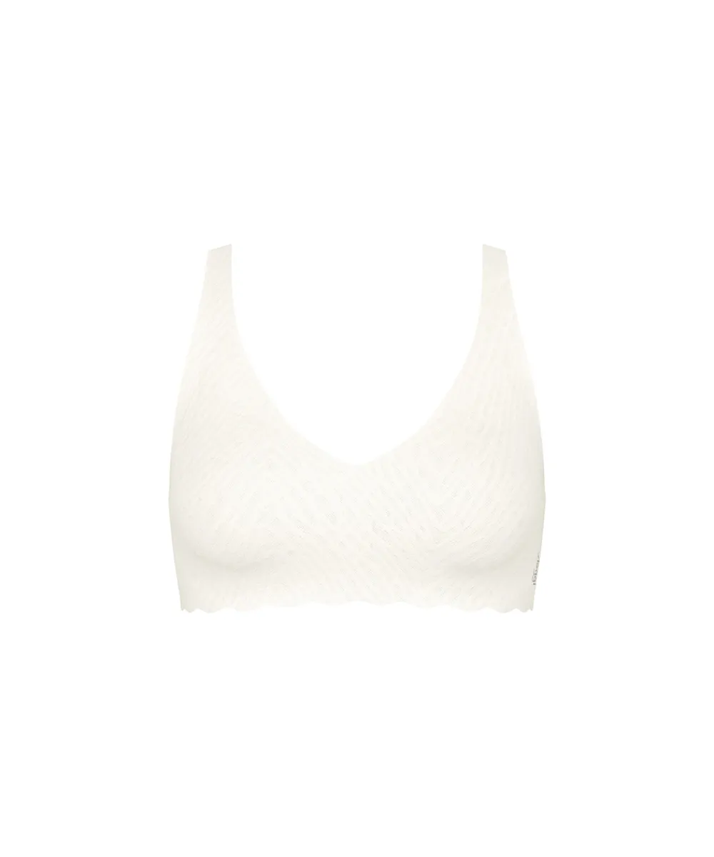 Bralette fra Sloggi Zero Feel Bliss. Toppen har et nyt look med sømfri, usynlig komfort og stærk støtte. Den er lavet i romantiske, 360° strækbare blonder og har aftagelige indlæg, der giver en forbedret silhuet, med usynlig teknologi mellem skålene, som giver ekstra støtte. Braletten har punktlimede stropper sikrer en pasform, der ikke niver. Bøjlefri bh’er eller bh’er uden bøjle er selvsagt bh’er der er lavet uden bøjle. Bh’er uden bøjle er særlig anvendelige til dig, der helst er fri for traditionelle bøjler. Materiale: 76% polyamid, 24% elastan